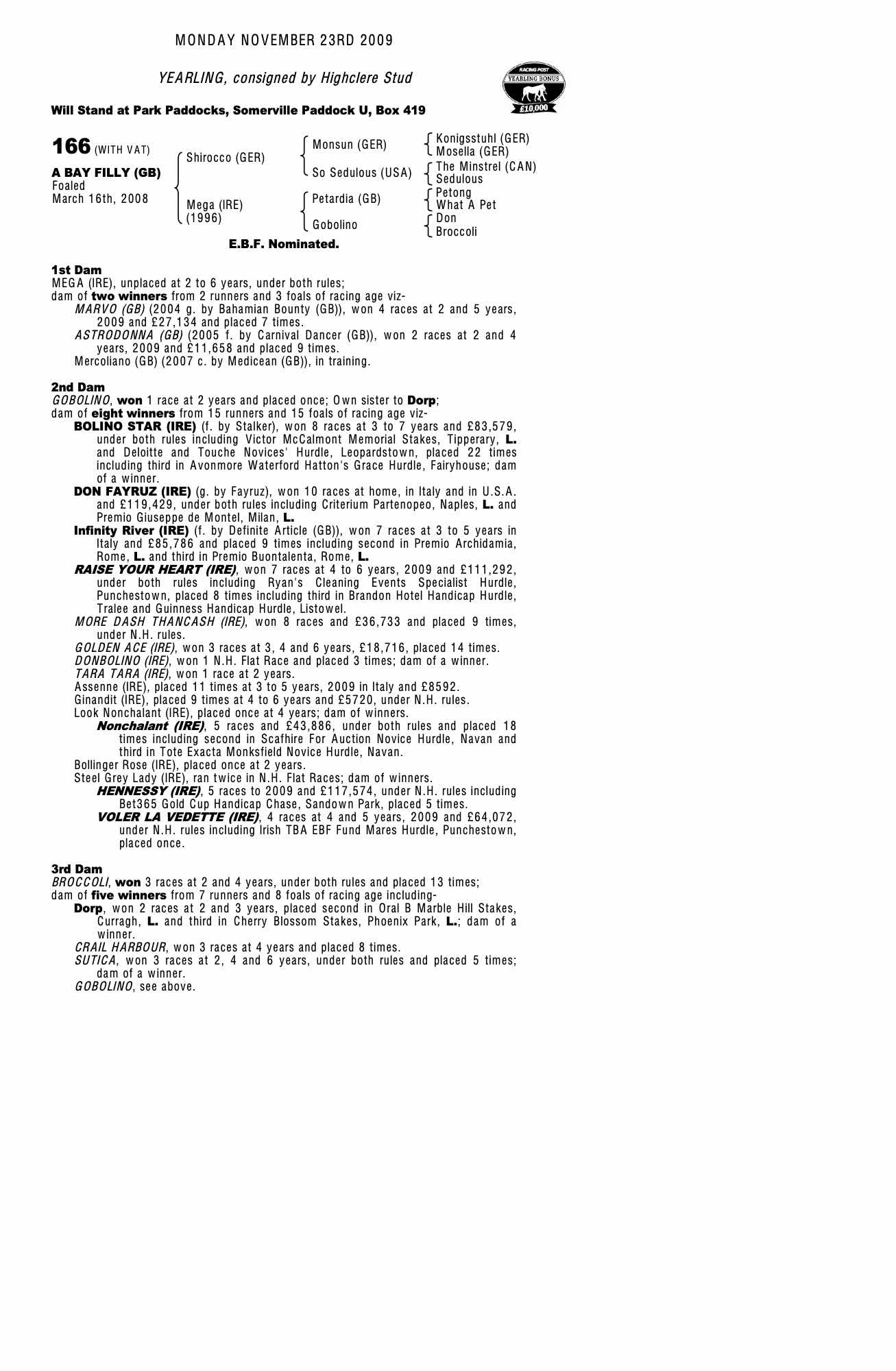 October Yearling Sale, Book 2 2010 lot 1315 F. by Motivator (GB) 2009, Highclere Stud=>Vendor 7,000 gns