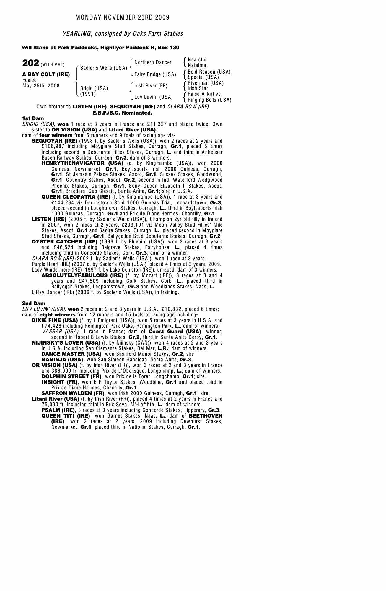 Houghton Yearling Sale 2003 lot 105 F. 2002, Oaks Farm Stables=>BBA Ireland 750,000 gns