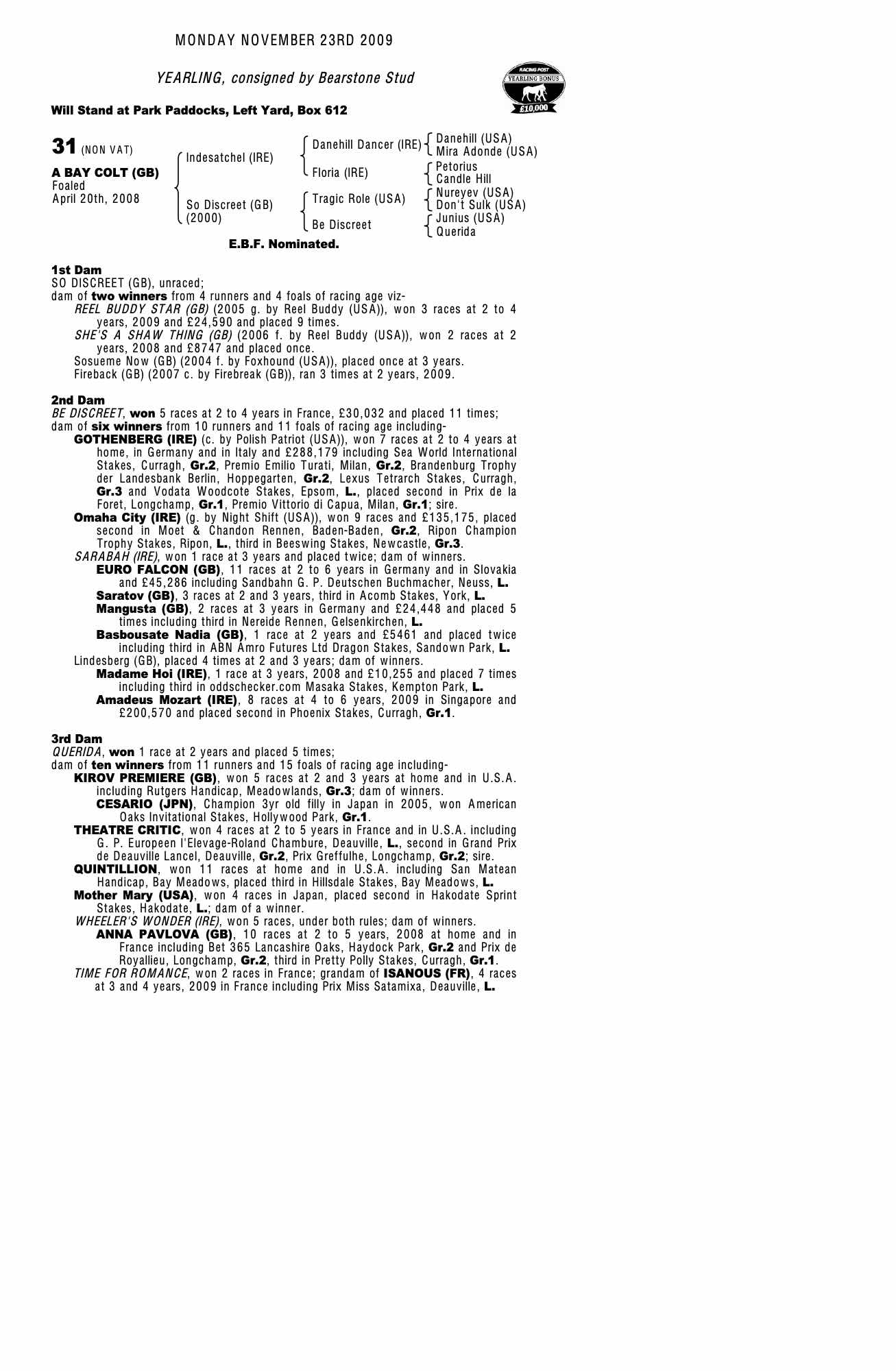 December Yearling Sale 2012 lot 23 C. by Mind Games (GB) 2011, Bearstone Stud=>Seamus O'Donnell 3,000 gns