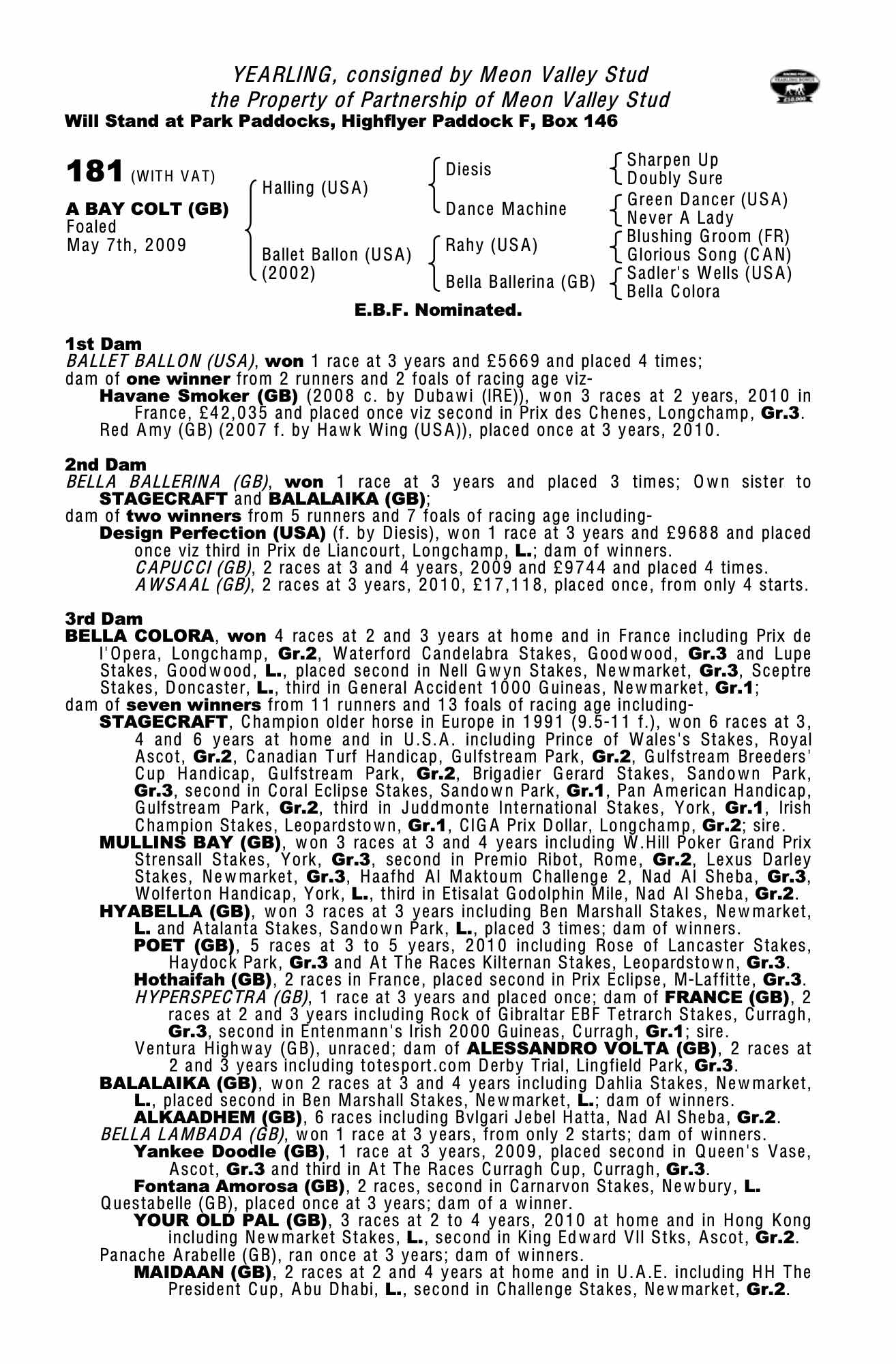 Consignor: Meon Valley Stud