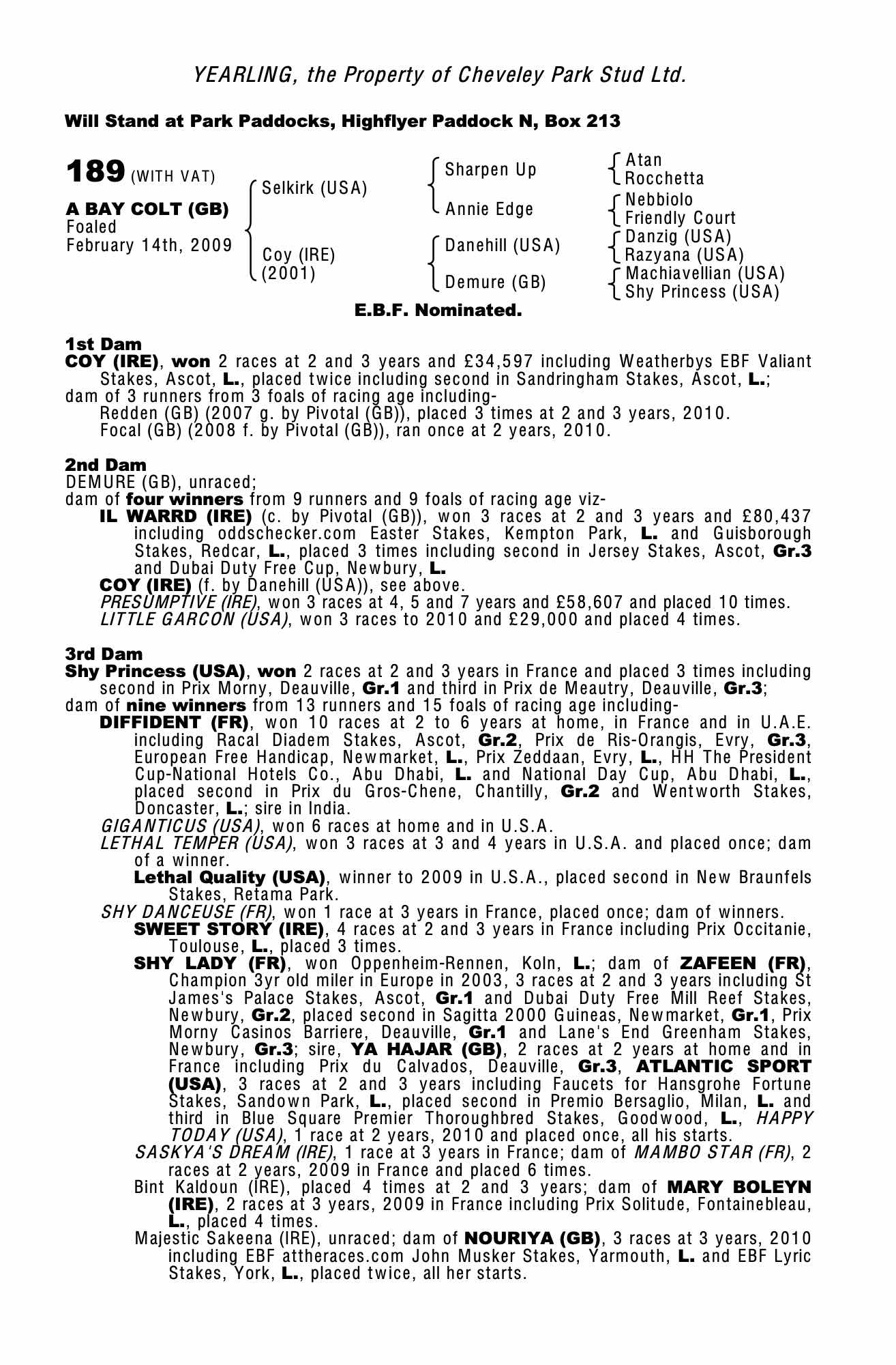 July Sale 2010 lot 453 Redden (GB) (G. by Pivotal (GB)), Somerville Lodge Ltd. (W. Haggas)=>Abdulmohsen Al-Abdulkareem 12,500 gns
