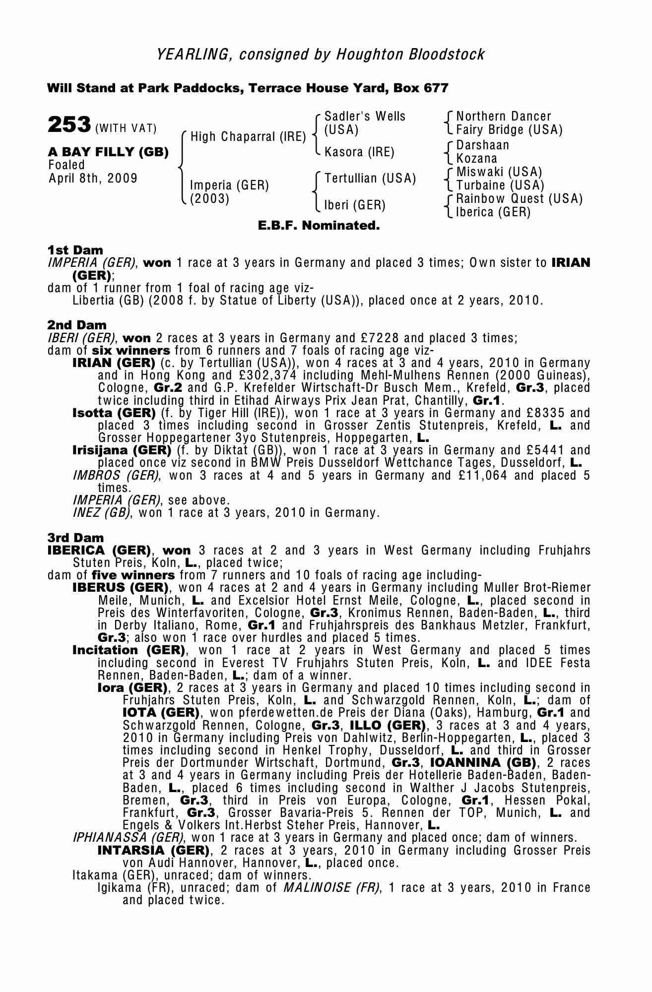 October Yearling Sale, Book 3 2009 lot 1922 F. by Statue of Liberty (USA) 2008, Houghton Bloodstock=>Vendor 1,800 gns