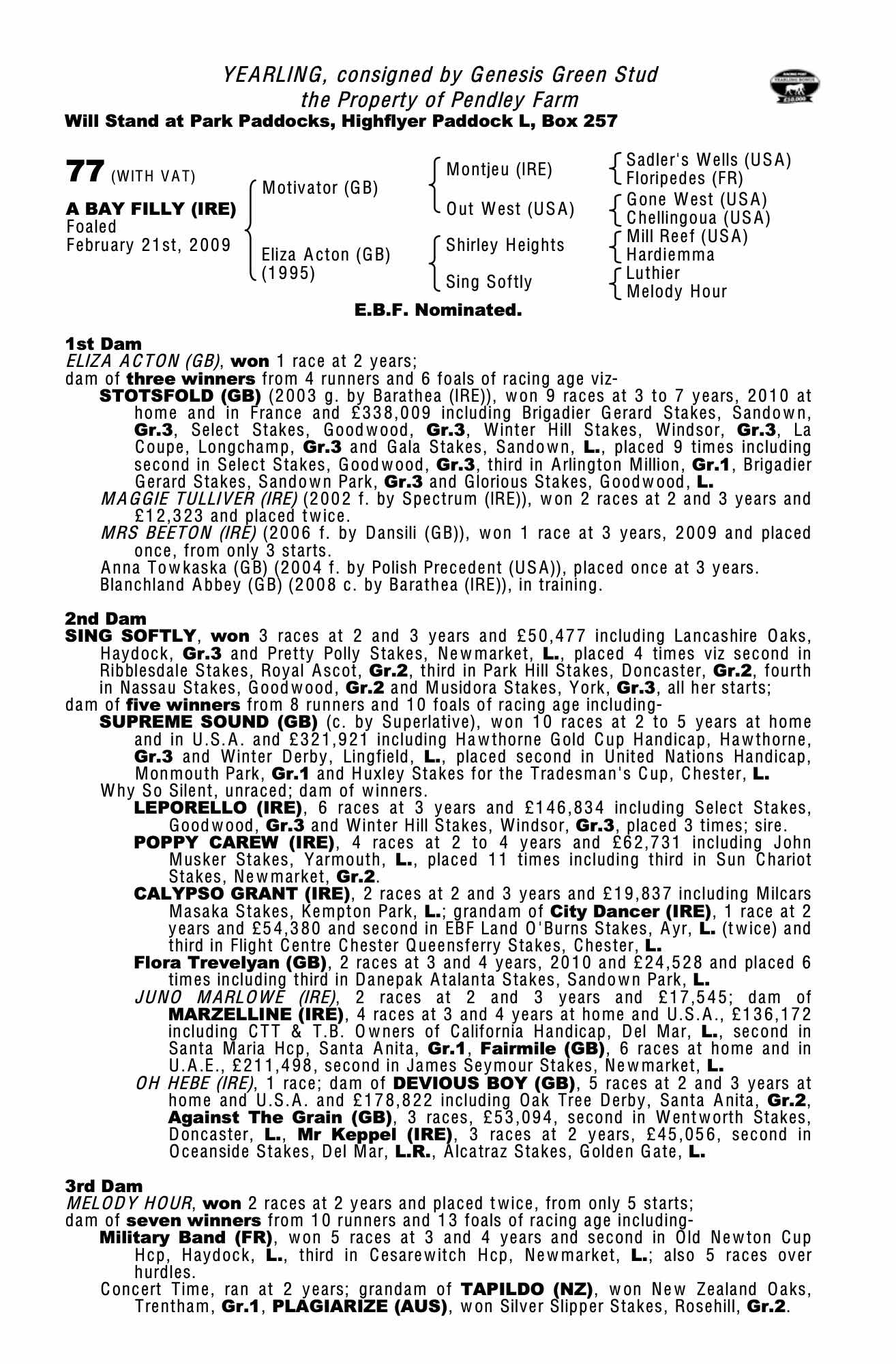 July Sale 2011 lot 254, Tweenhills Farm & Stud=>Emerald Bloodstock 4,200 gns