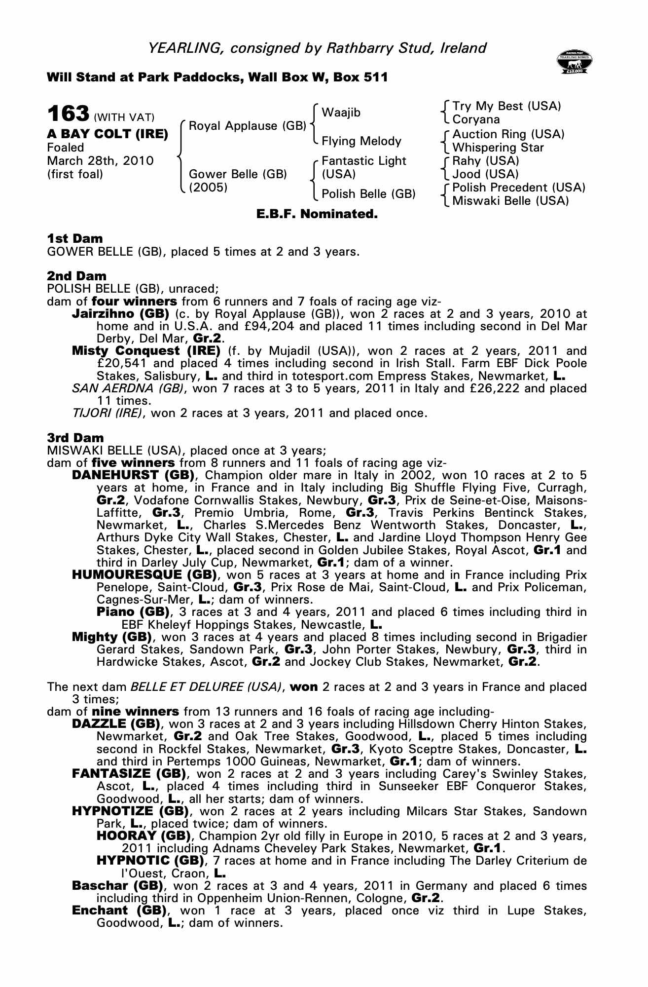 Consignor: Rathbarry Stud, Ireland