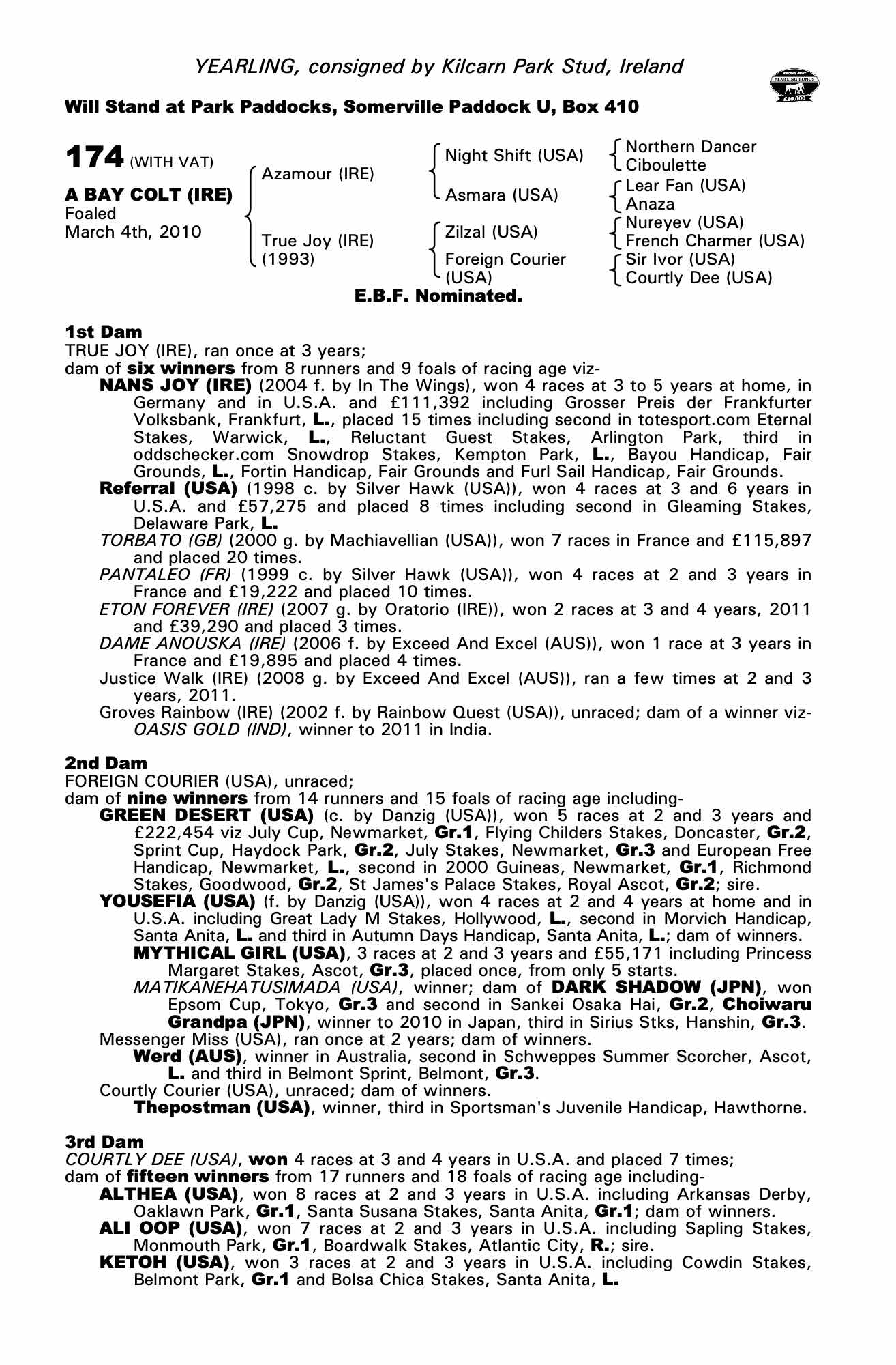 October Yearling Sale, Book 1 2003 lot 399 F. by Rainbow Quest (USA) 2002, Kilcarn Park, Ireland=>Lot Not Sold 100,000 gns
