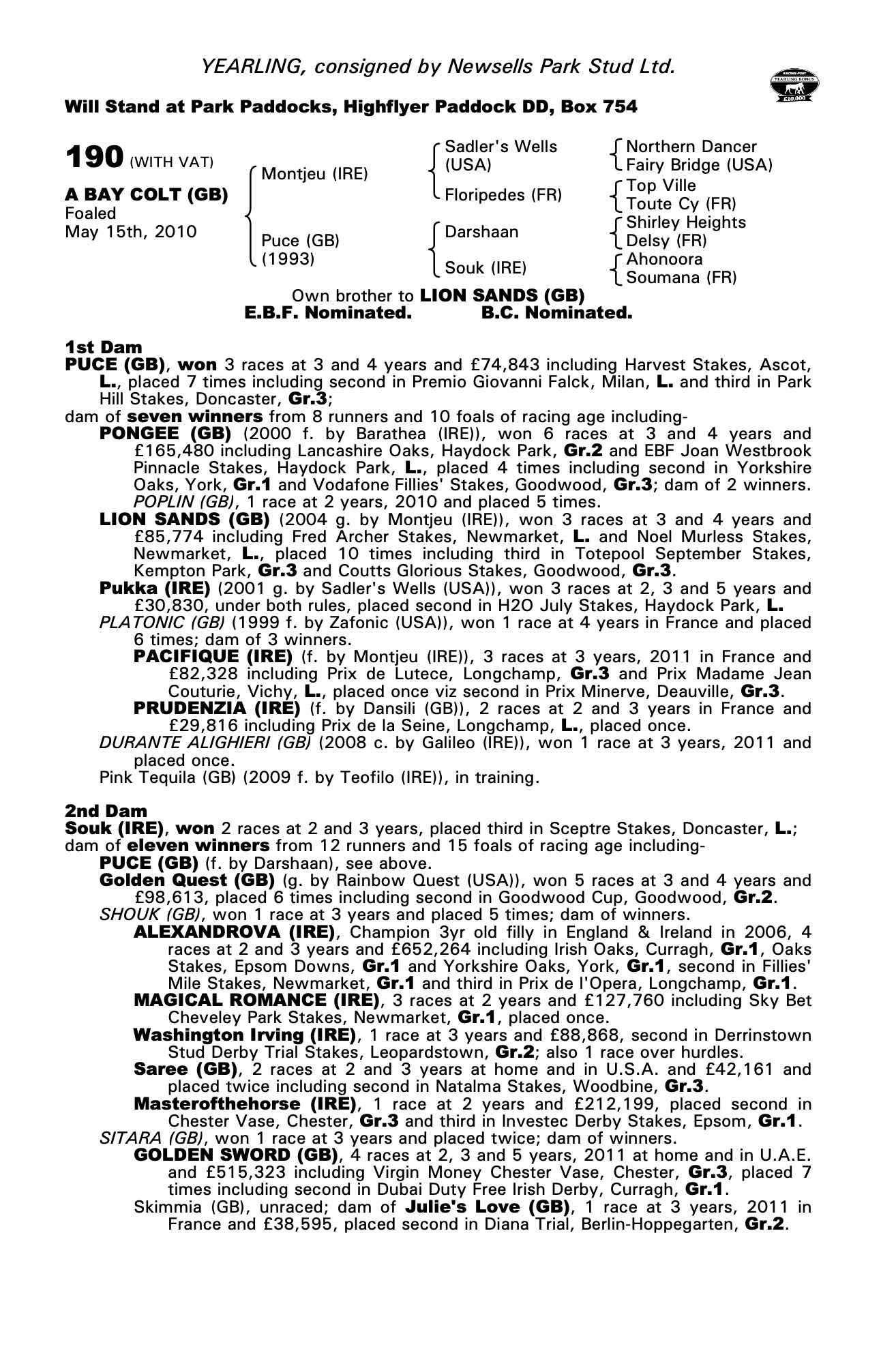 Houghton Yearling Sale 2002 lot 67 C. by Sadler's Wells (USA) 2001, Bugley Stud=>Vendor 80,000 gns