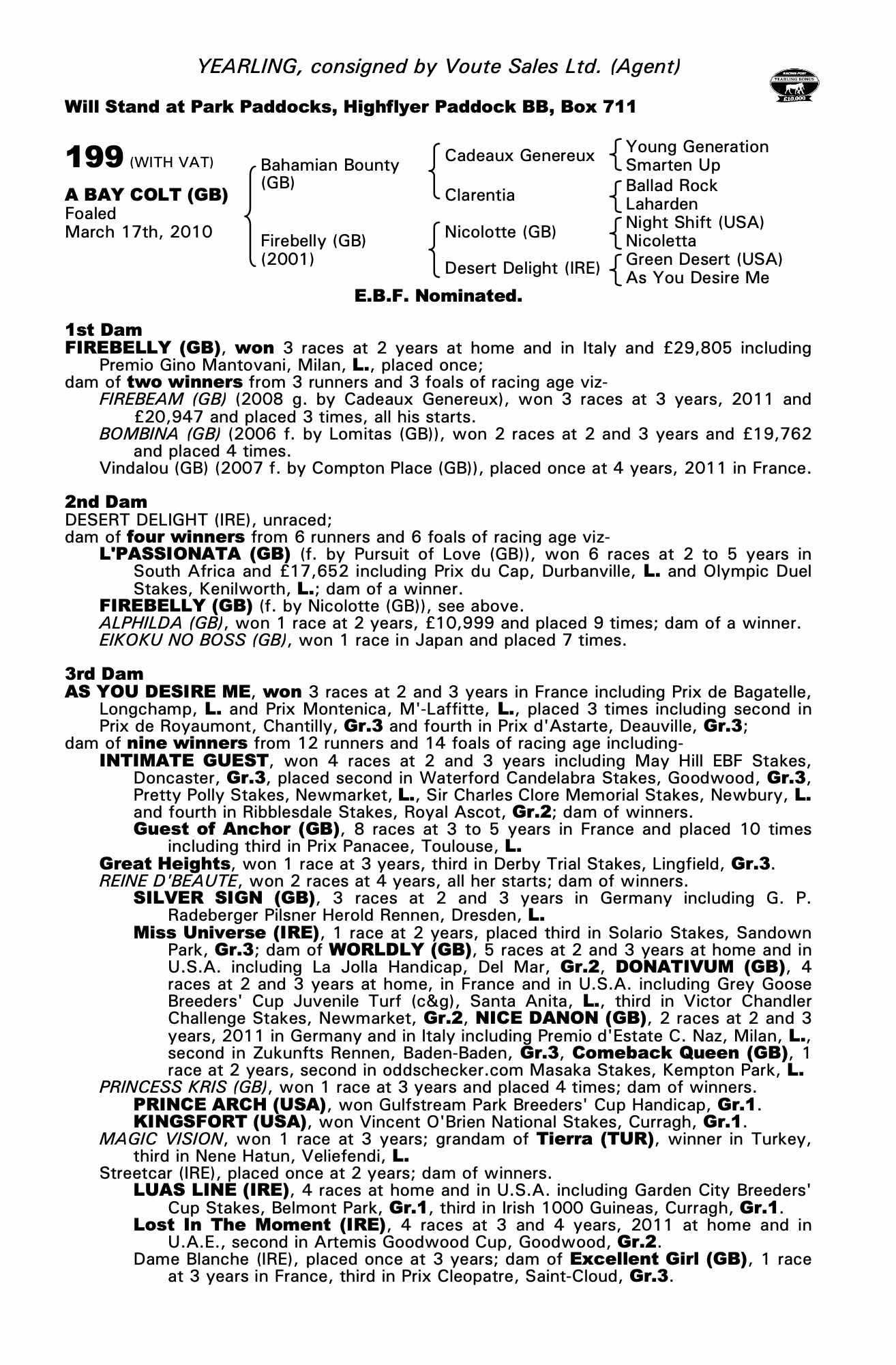 Consignor: Voute Sales Ltd. (Agent)
