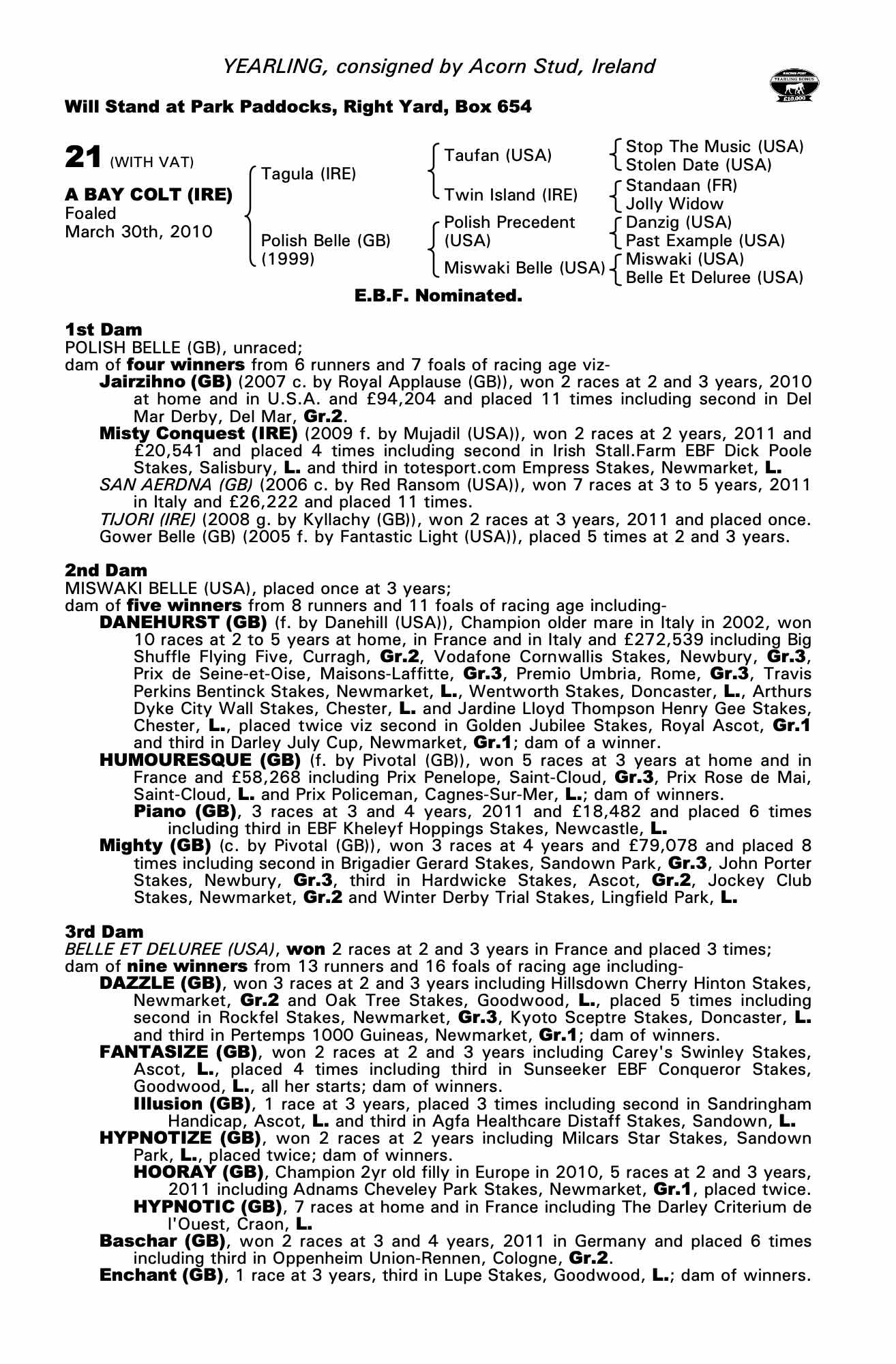 July Sale 2011 lot 624 Tijori (IRE) (G. by Kyllachy (GB)), East Everleigh Stables (R. Hannon)=>Vendor 12,000 gns