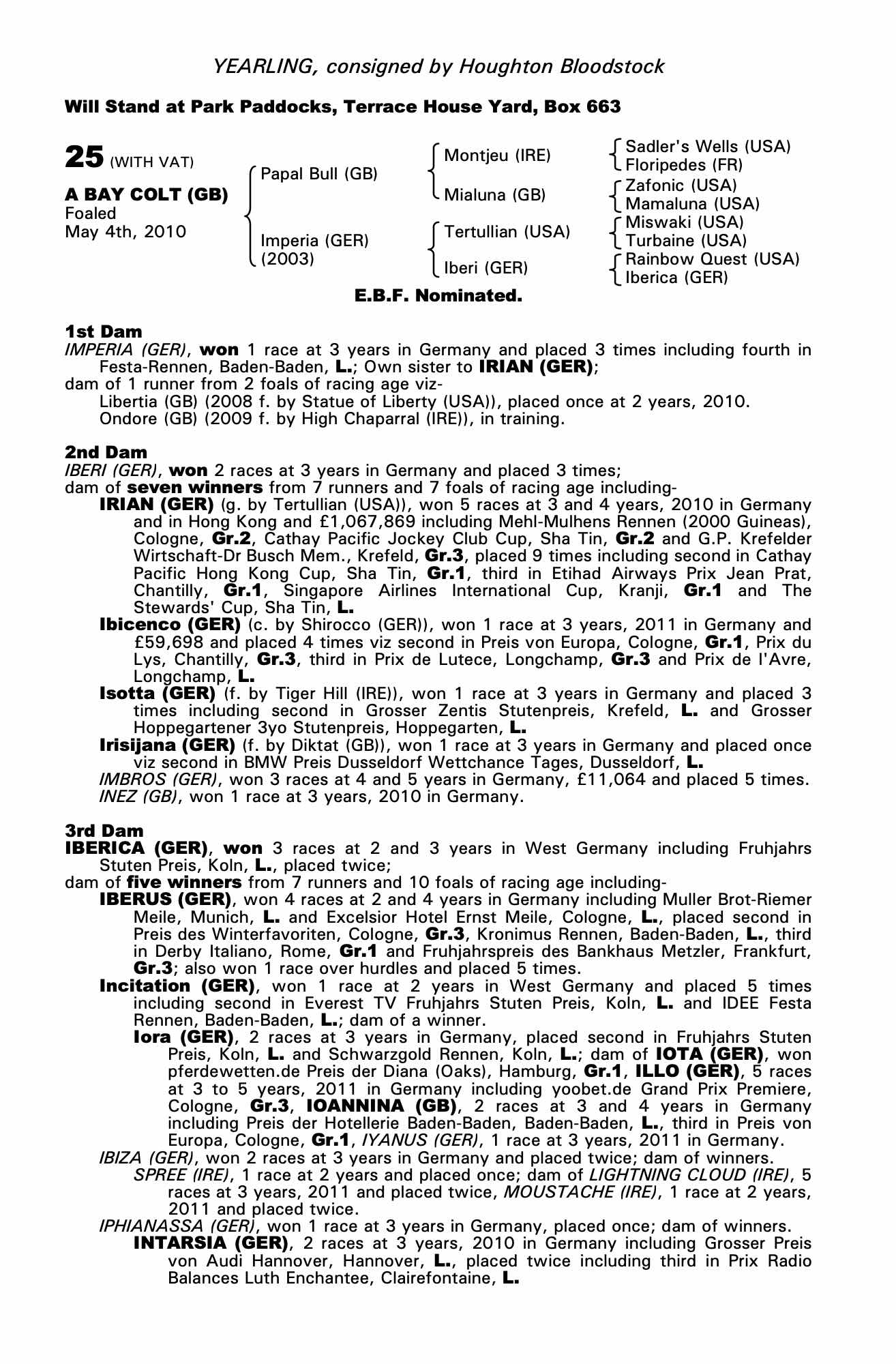 December Yearling Sale 2010 lot 253 F. by High Chaparral (IRE) 2009, Houghton Bloodstock=>Doris Schoenherr 1,000 gns