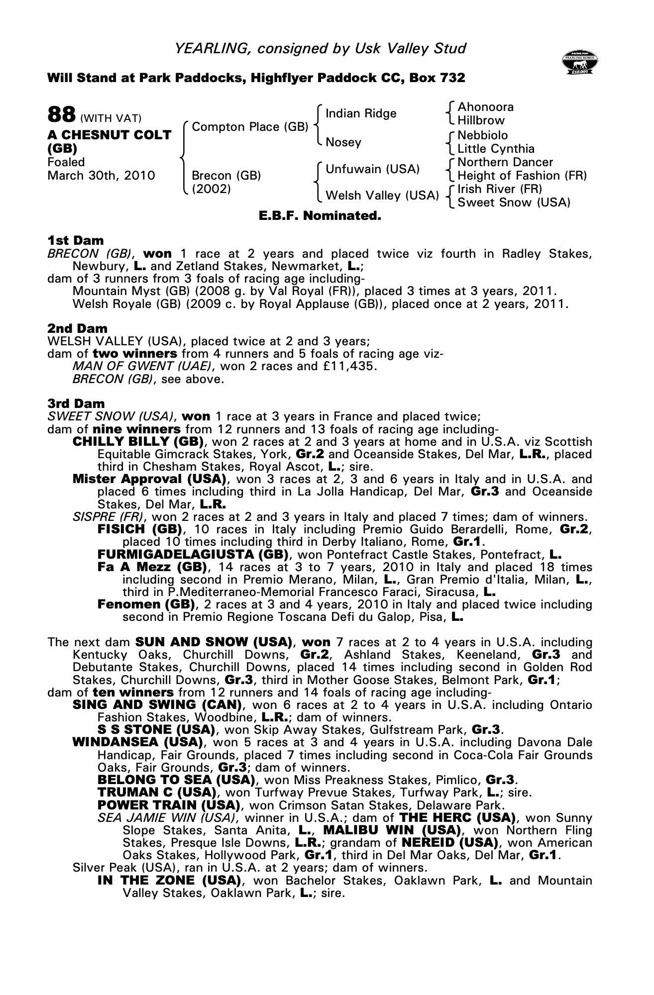 Consignor: Usk Valley Stud