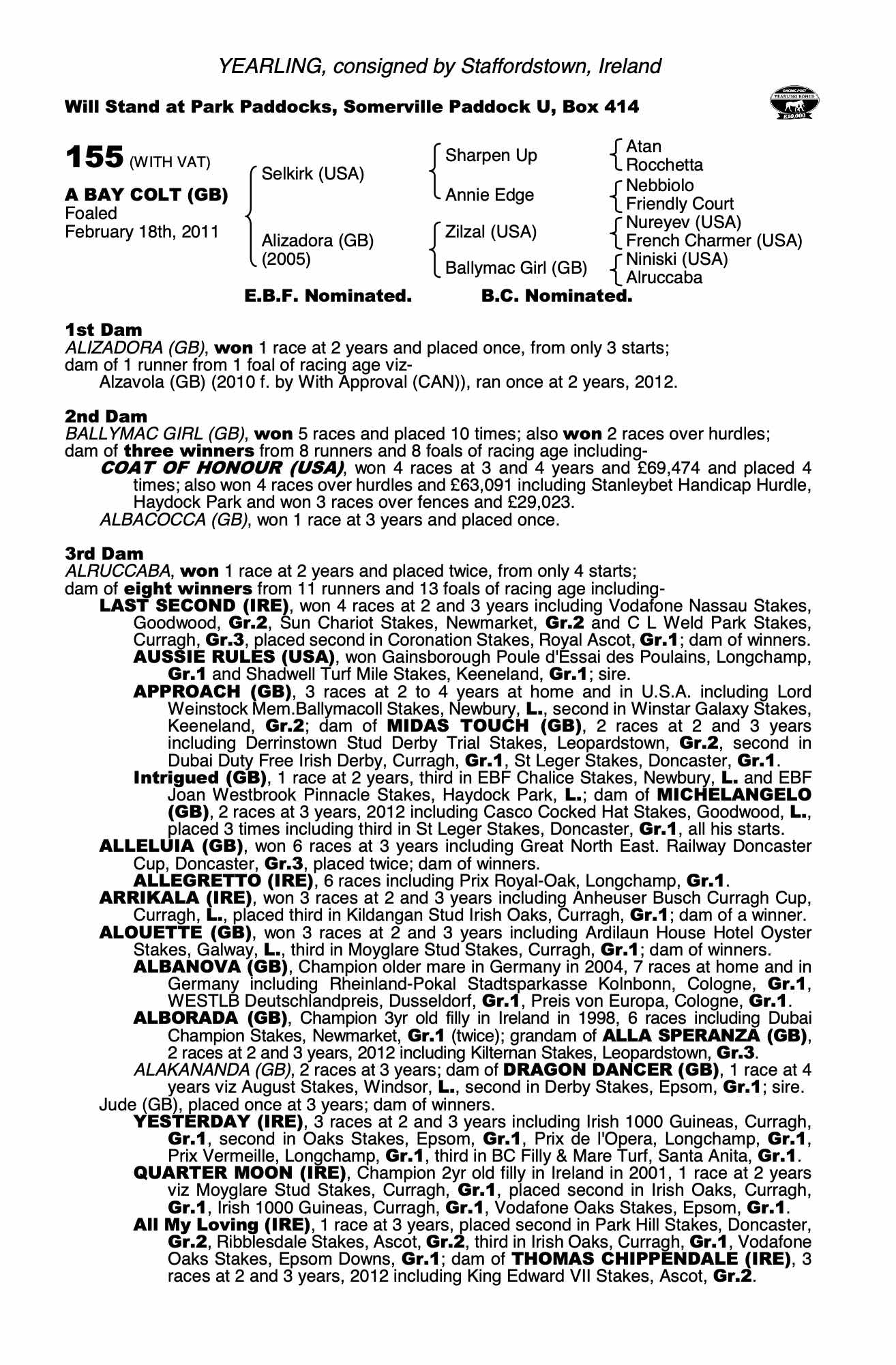 December Foal Sale 2012 lot 665 C. by Sir Percy (GB) 2012, St Simon Stud=>Zubieta 12,000 gns