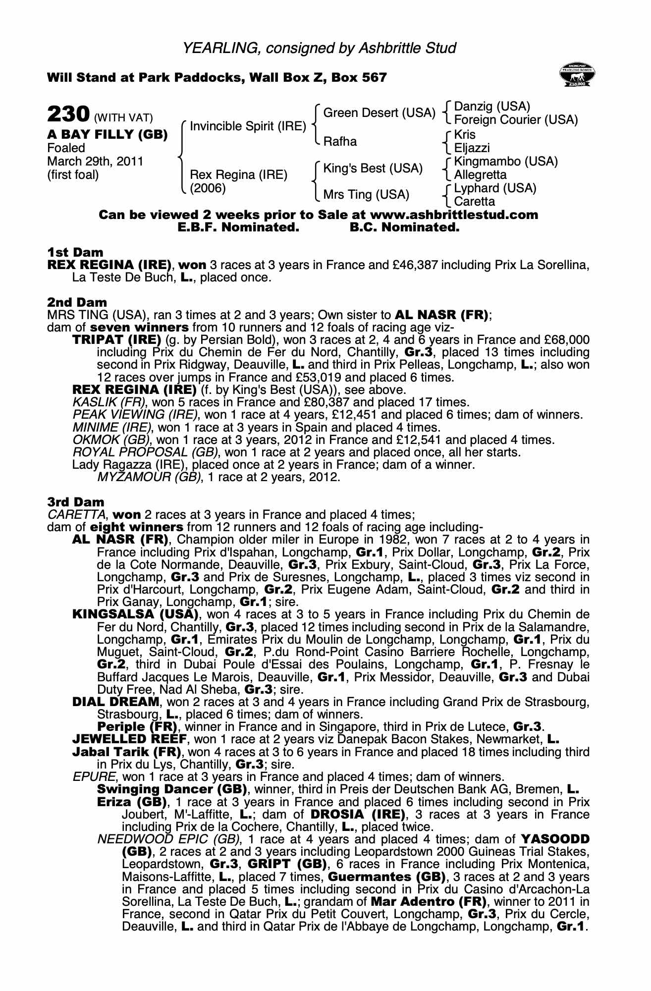 Consignor: Ashbrittle Stud