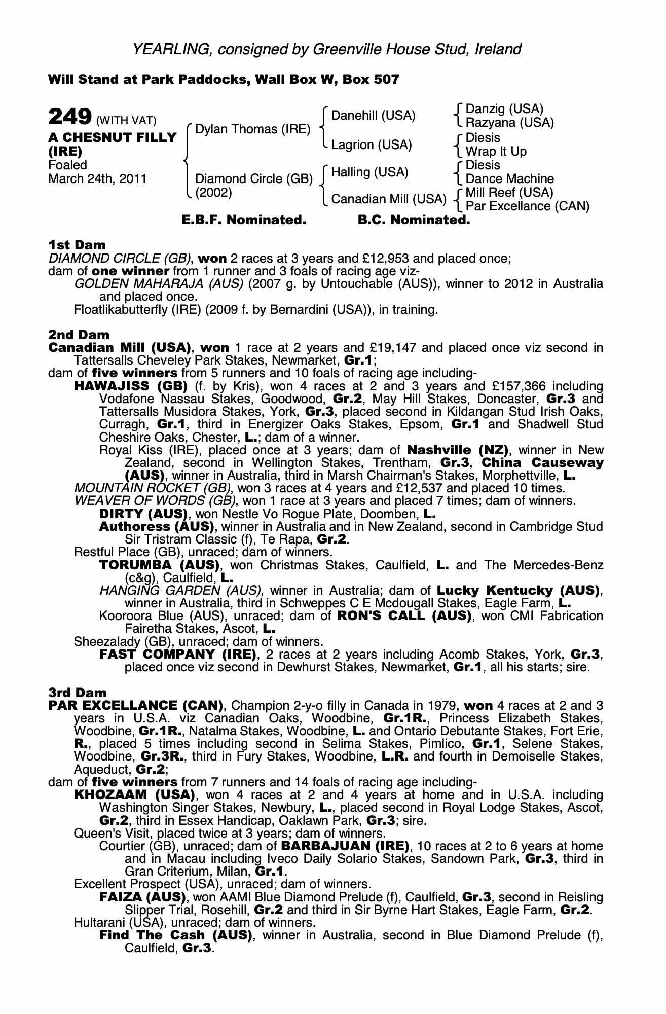 July Sale 2013 lot 43 Floatlikabutterfly (IRE) (F. by Bernardini (USA)), Greenville House Stud, Ireland=>Lot Not Sold 9,500 gns