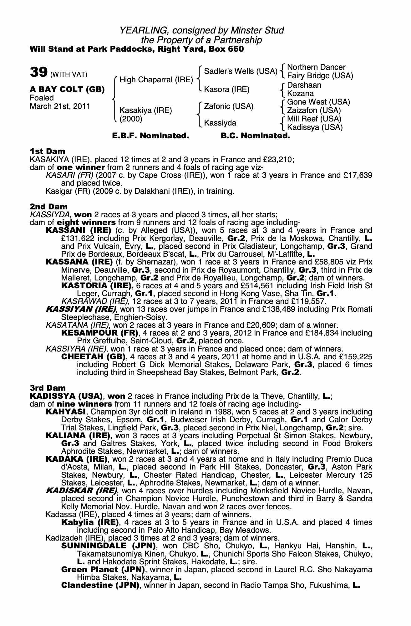 Consignor: Minster Stud