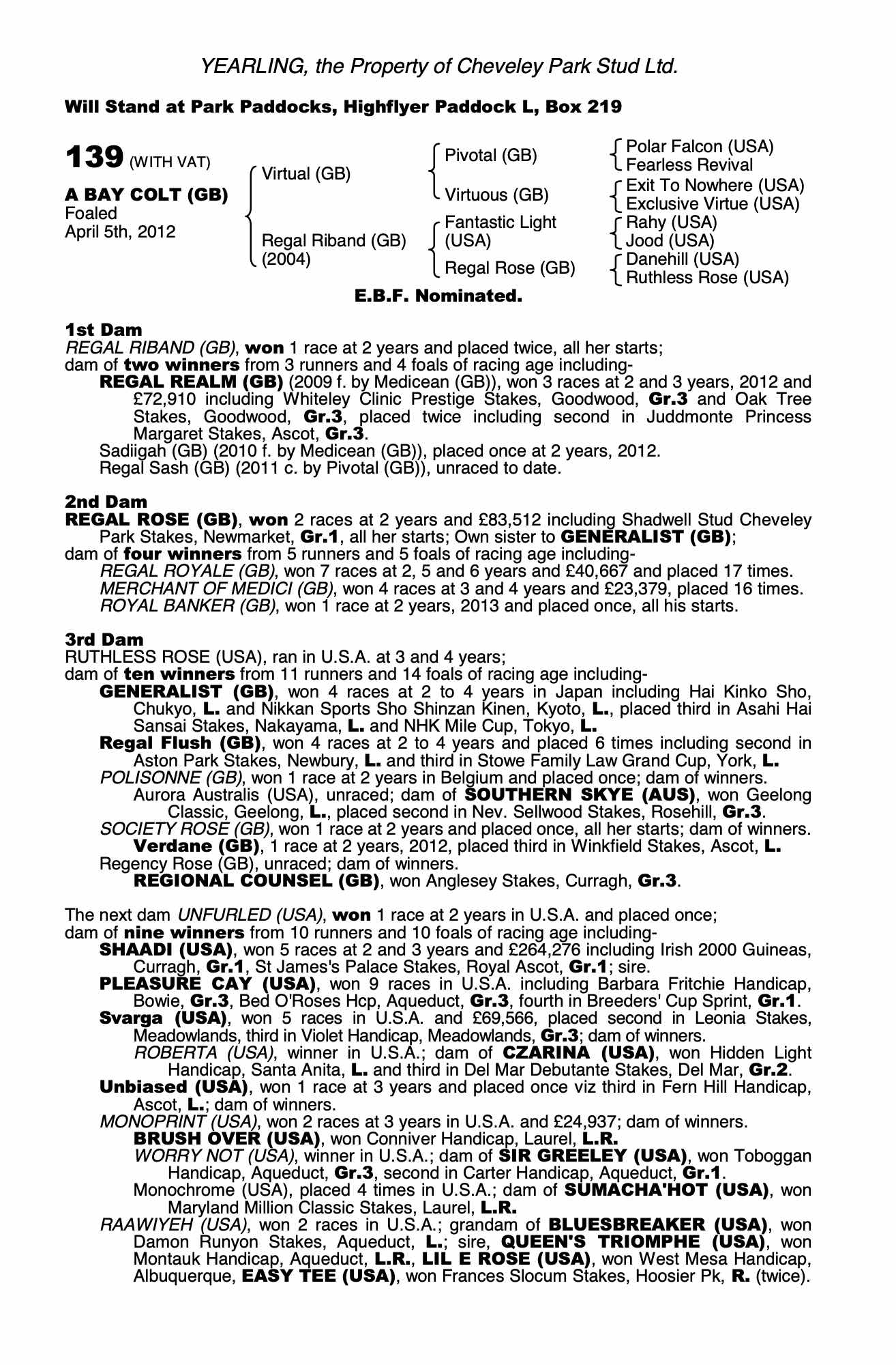 Autumn Horses in Training Sale 2013 lot 1137 Regal Sash (GB) (C. by Pivotal (GB)), Shalfleet Stables (J. Noseda)=>Abdulaziz Al Boenain 16,000 gns