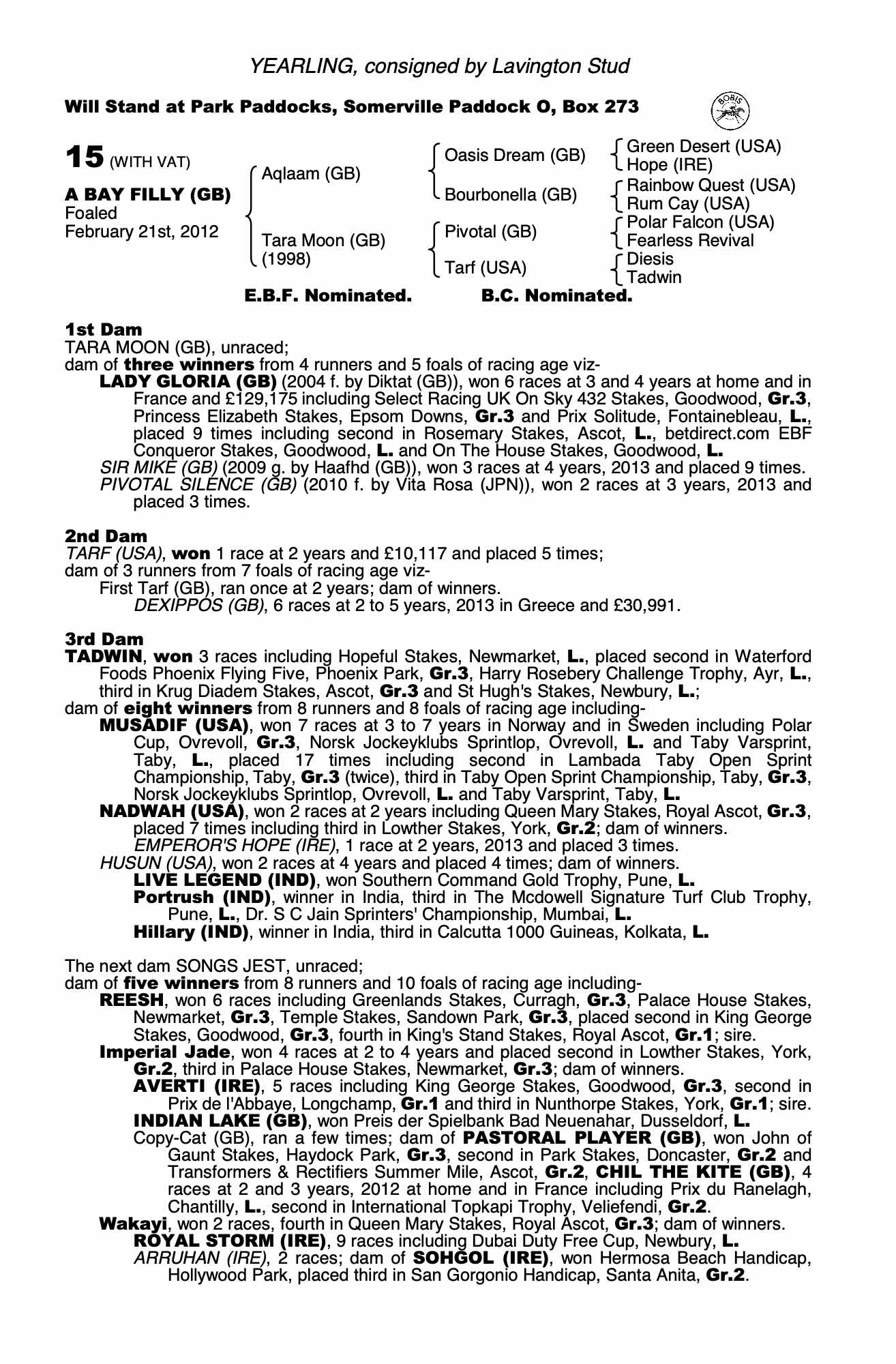 December Mare Sale 2016 lot 1915 Pivotal Silence (GB) (M. by Vita Rosa (JPN)), Jamie Railton (Agent)=>Vendor 4,000 gns