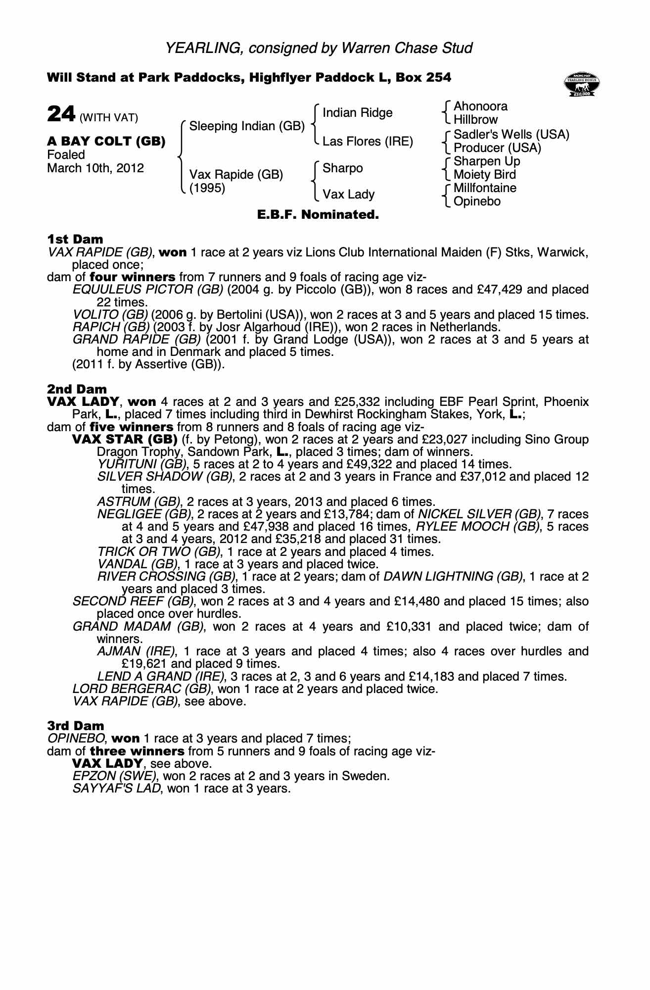 Consignor: Warren Chase Stud