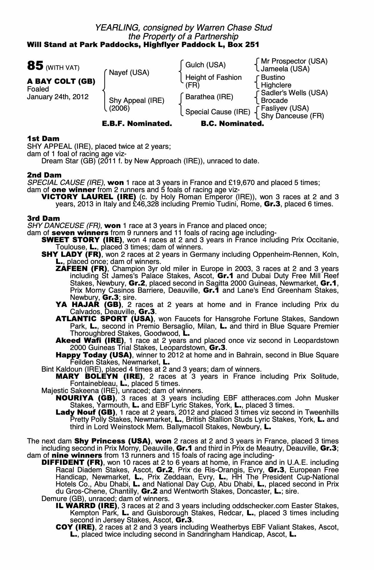 October Yearling Sale, Book 3 2014 lot 1330 C. by Aqlaam (GB) 2013, Warren Chase Stud=>Vanessa Johnson 1,500 gns