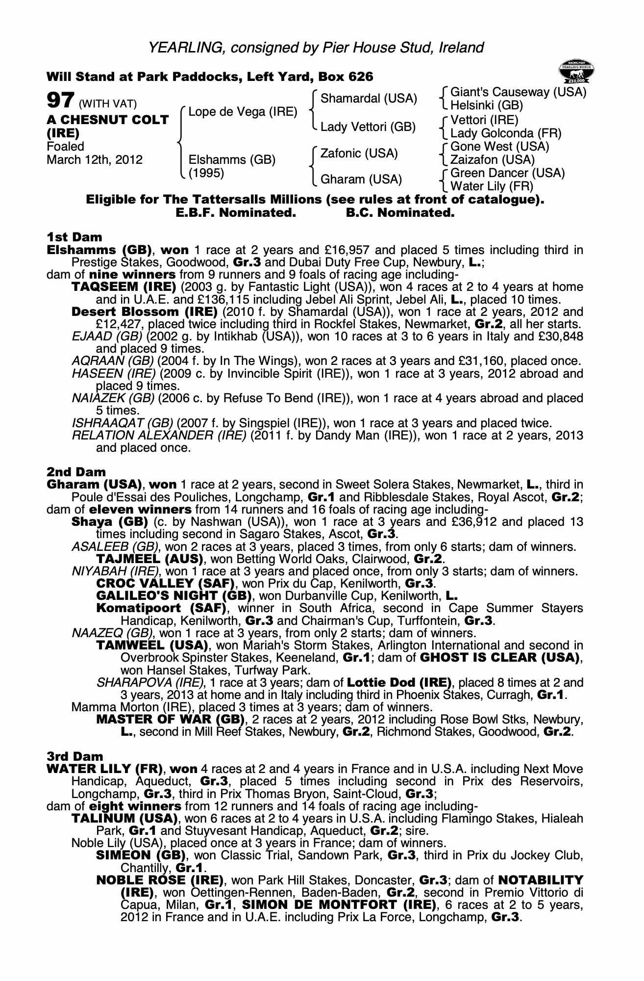 Craven Breeze Up Sale 2012 lot 171 F. by Shamardal (USA) 2010, Tally-Ho Stud, Ireland=>R O'Gorman Bloodstock 100,000 gns