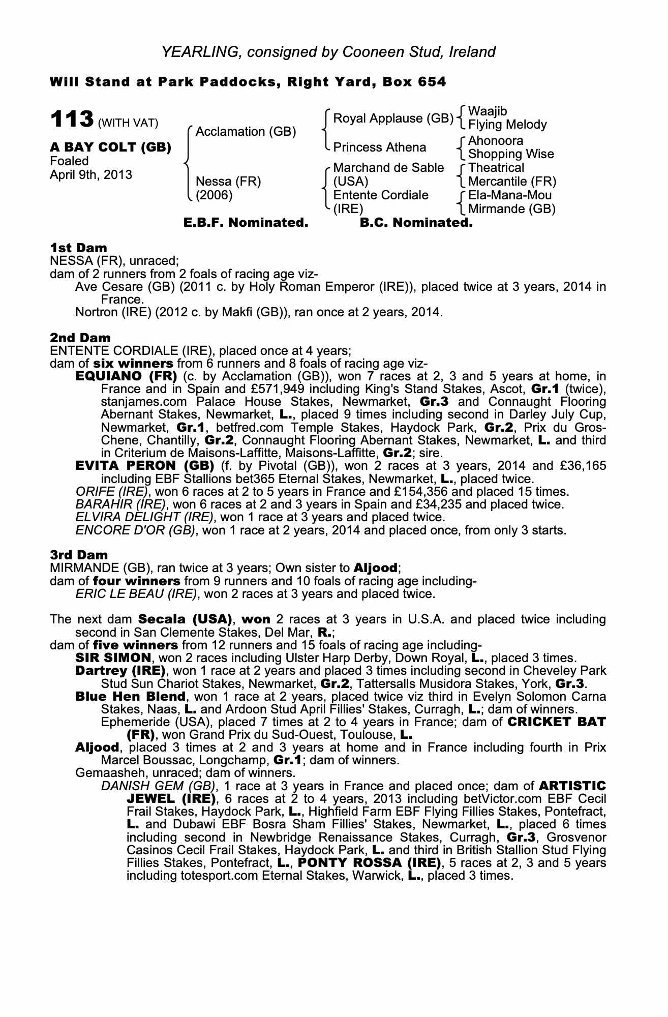 October Yearling Sale, Book 1 2012 lot 156 C. by Holy Roman Emperor (IRE) 2011, Hillwood Stud=>Vendor 62,000 gns