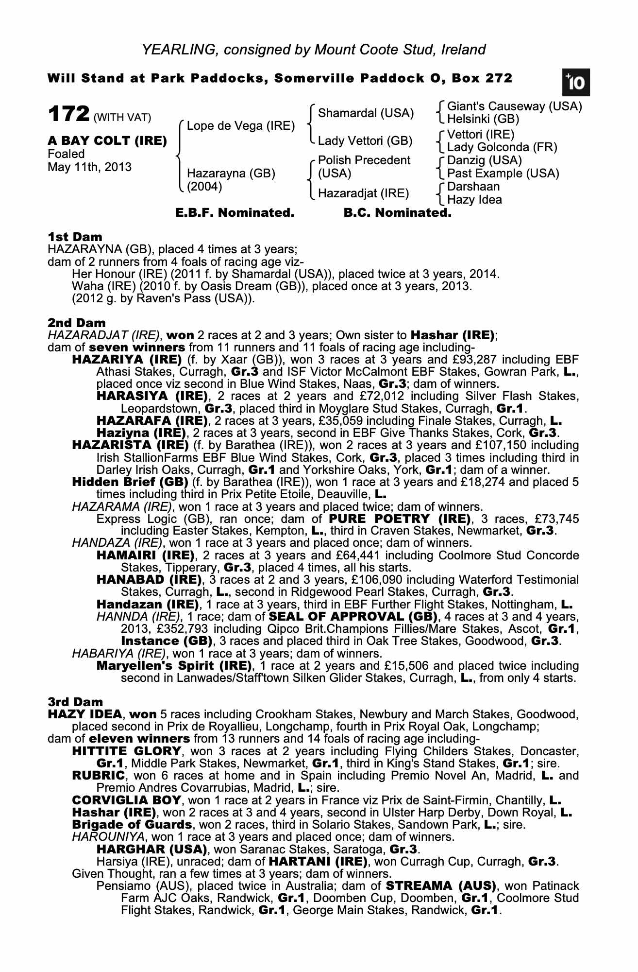Consignor: Mount Coote Stud, Ireland
