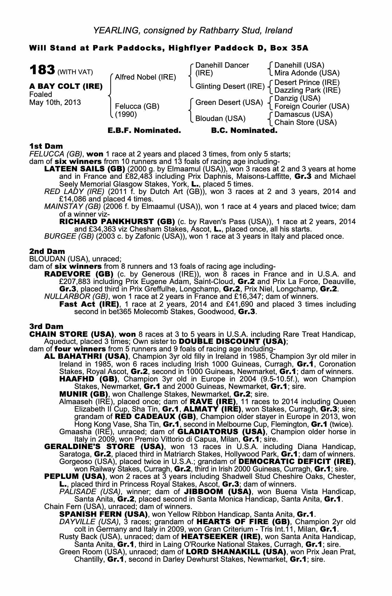 Consignor: Rathbarry Stud, Ireland