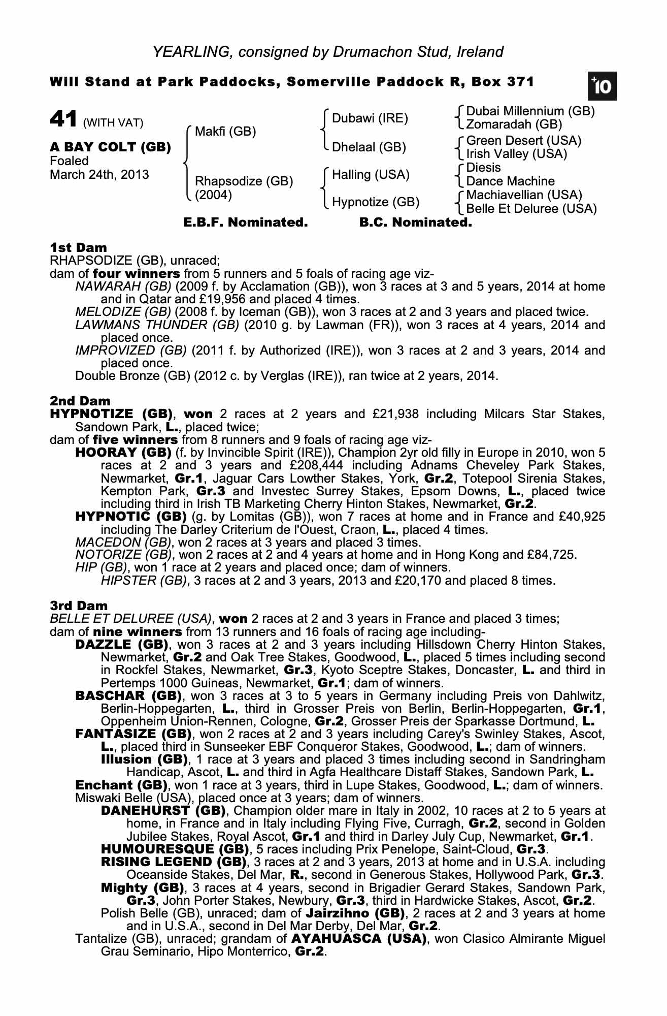 Consignor: Drumachon Stud, Ireland