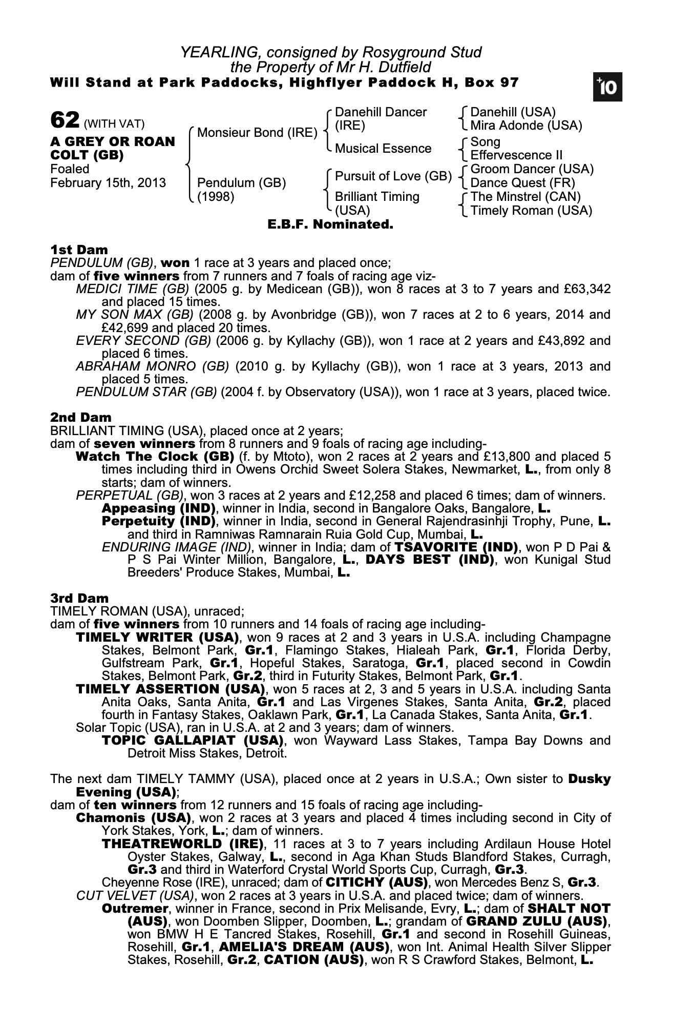 December Mare Sale 2009 lot 2023 Pendulum Star (GB) (M. by Observatory (USA)), Catridge Farm Stud=>Bilal Ekrayer 5,800 gns