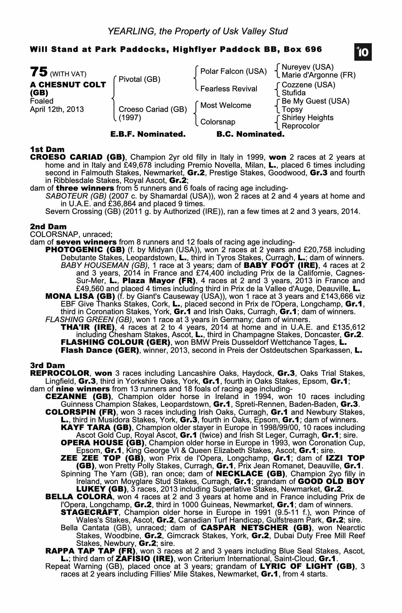 Consignor: Usk Valley Stud