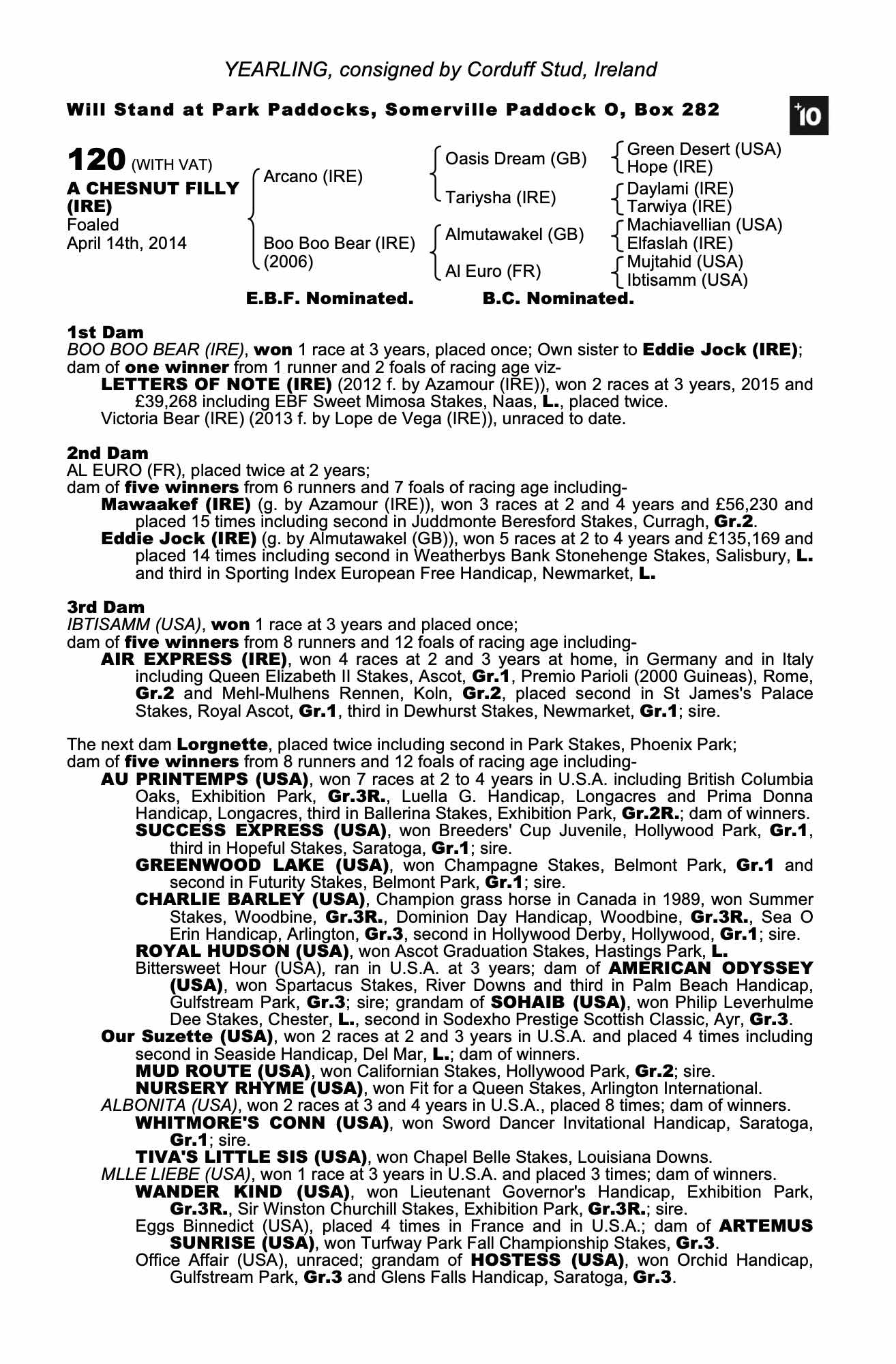 October Yearling Sale, Book 2 2014 lot 807 F. by Lope de Vega (IRE) 2013, Corduff Stud, Ireland=>SARL John Hammond 24,000 gns