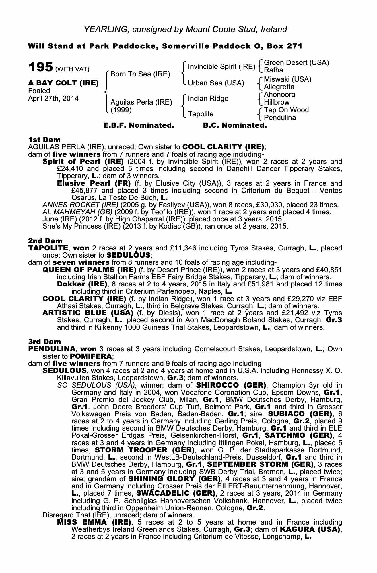 December Foal Sale 2014 lot 981, Tinnakill House, Ireland=>Mandore International Agency 140,000 gns