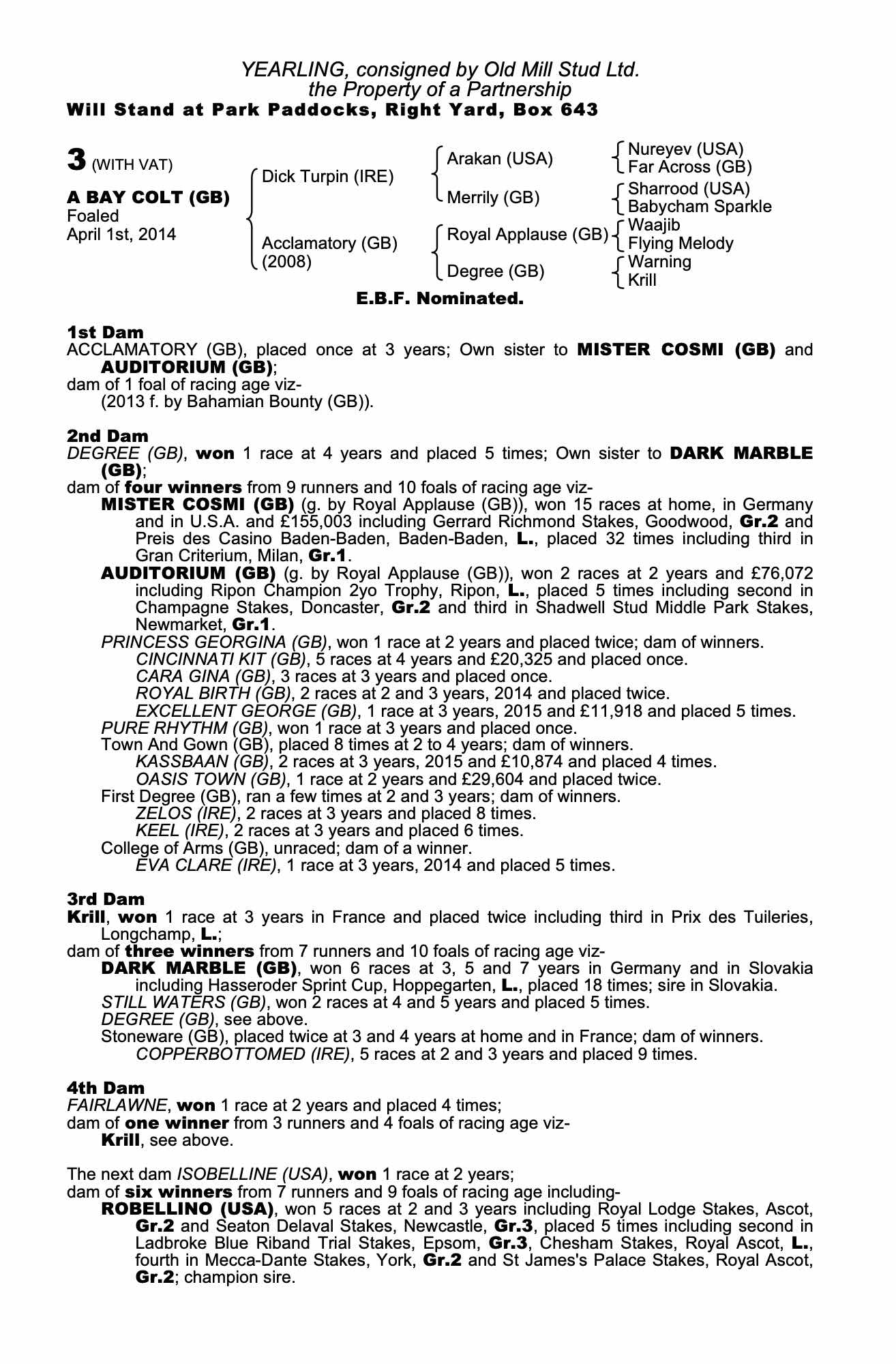 December Foal Sale 2017 lot 1082 F. by Sir Percy (GB) 2017, Galloway Stud=>Vendor 4,000 gns