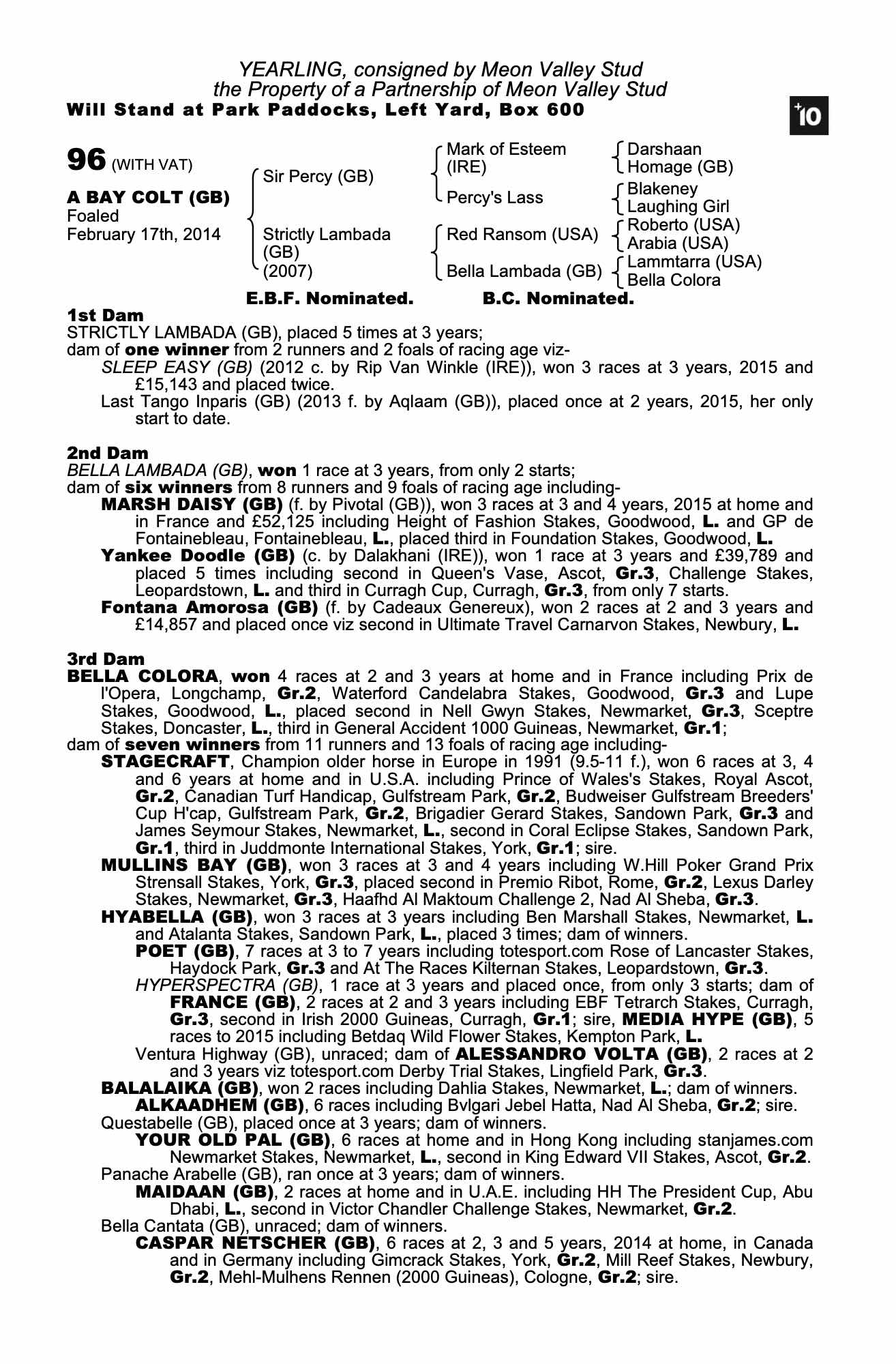 Consignor: Meon Valley Stud