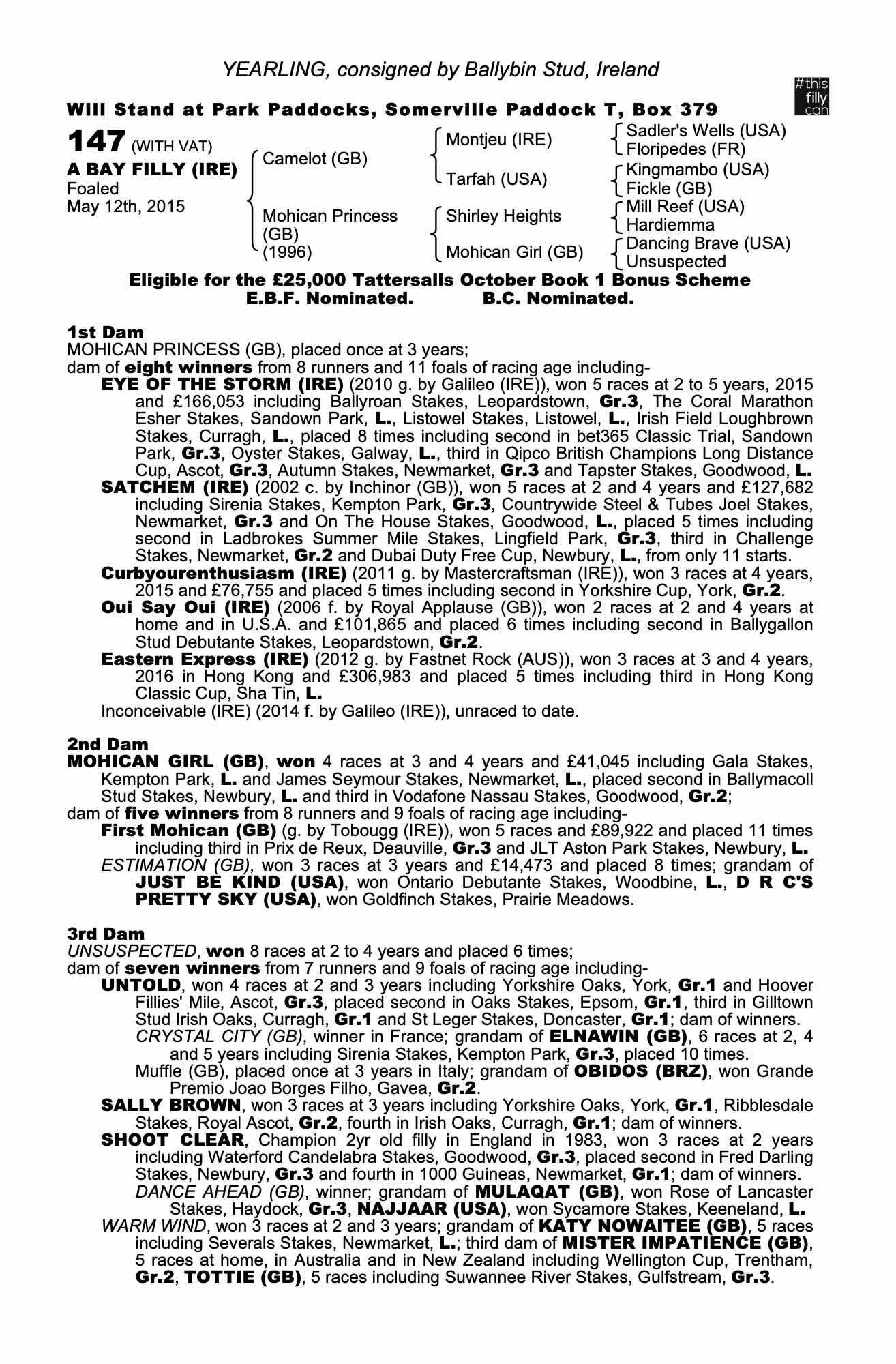 October Yearling Sale Book 1, 2015 lot 340 F. by Galileo (IRE) 2014, Watership Down Stud=>China Horse Club 400,000 gns