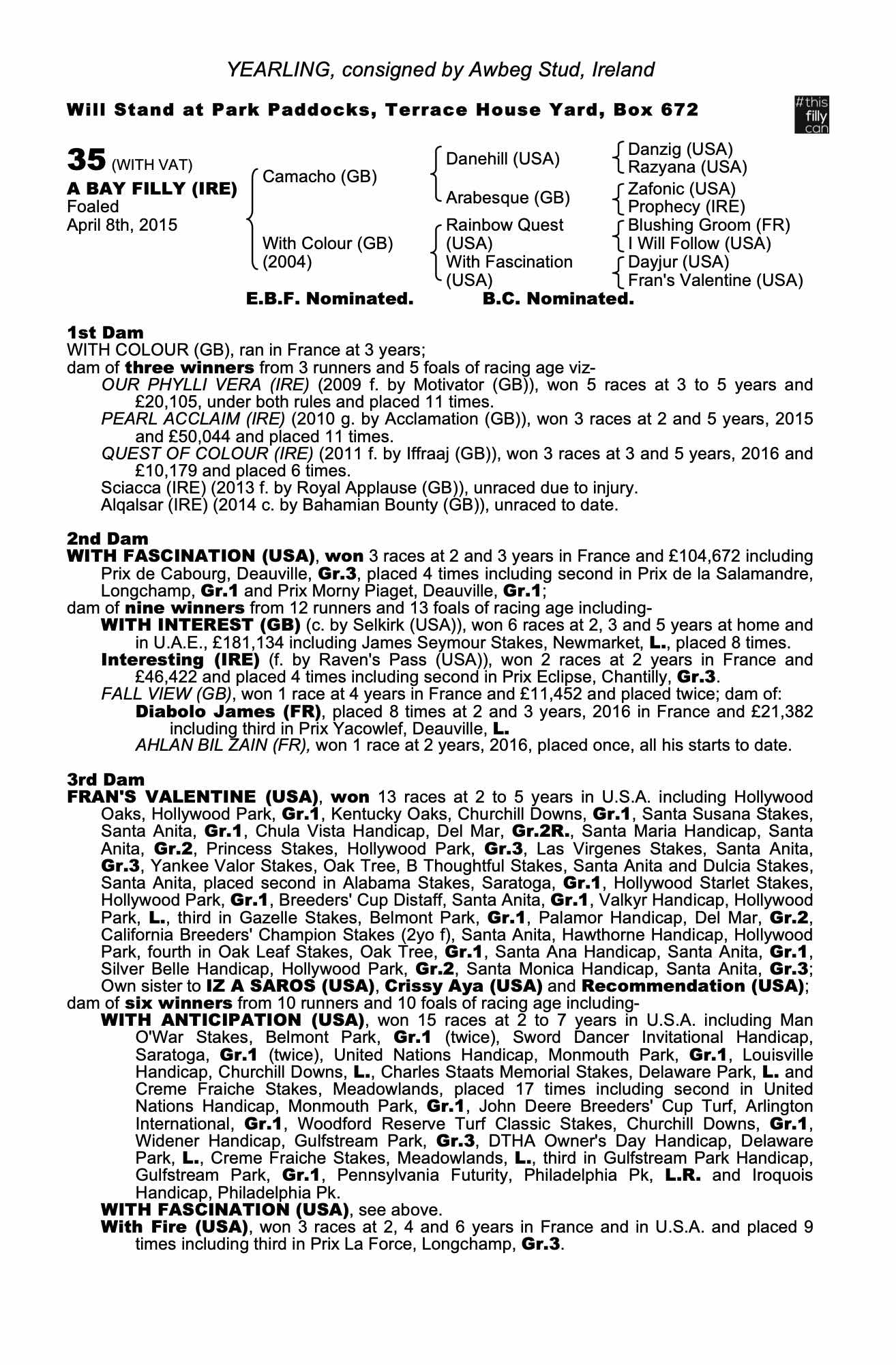 Consignor: Awbeg Stud, Ireland