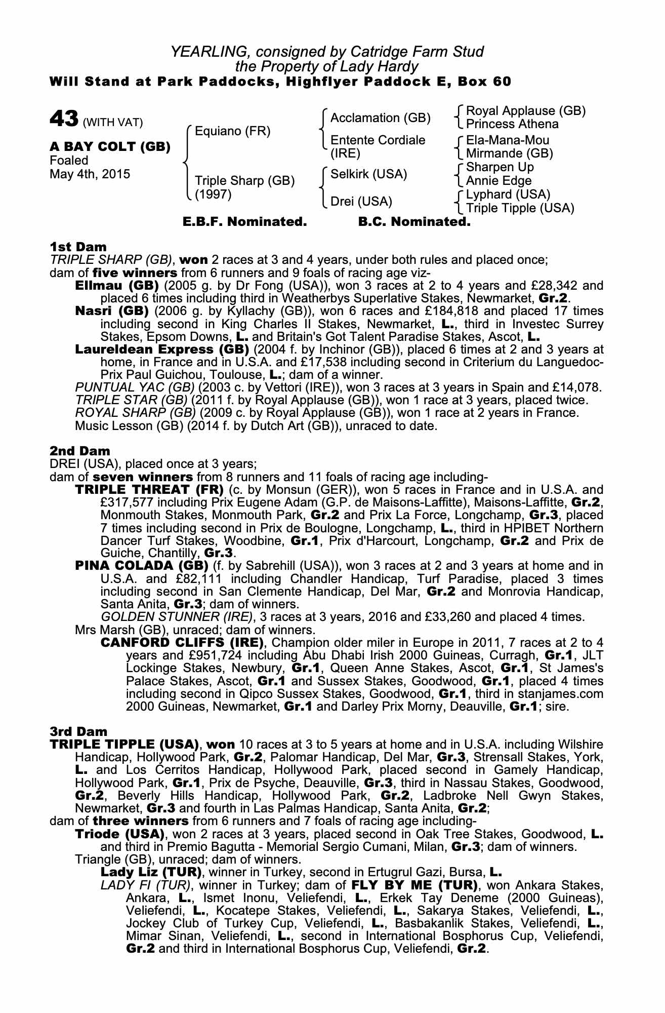 Consignor: Catridge Farm Stud