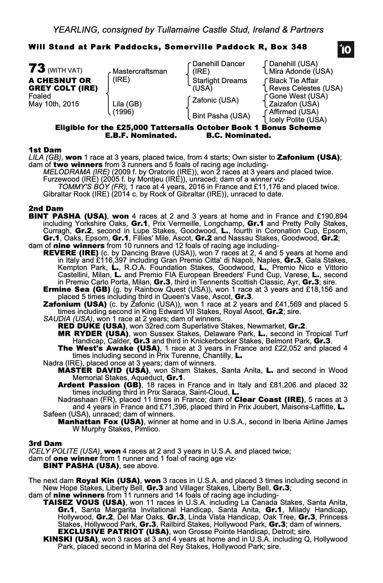 Consignor: Tullamaine Castle Stud, Ireland & Partners