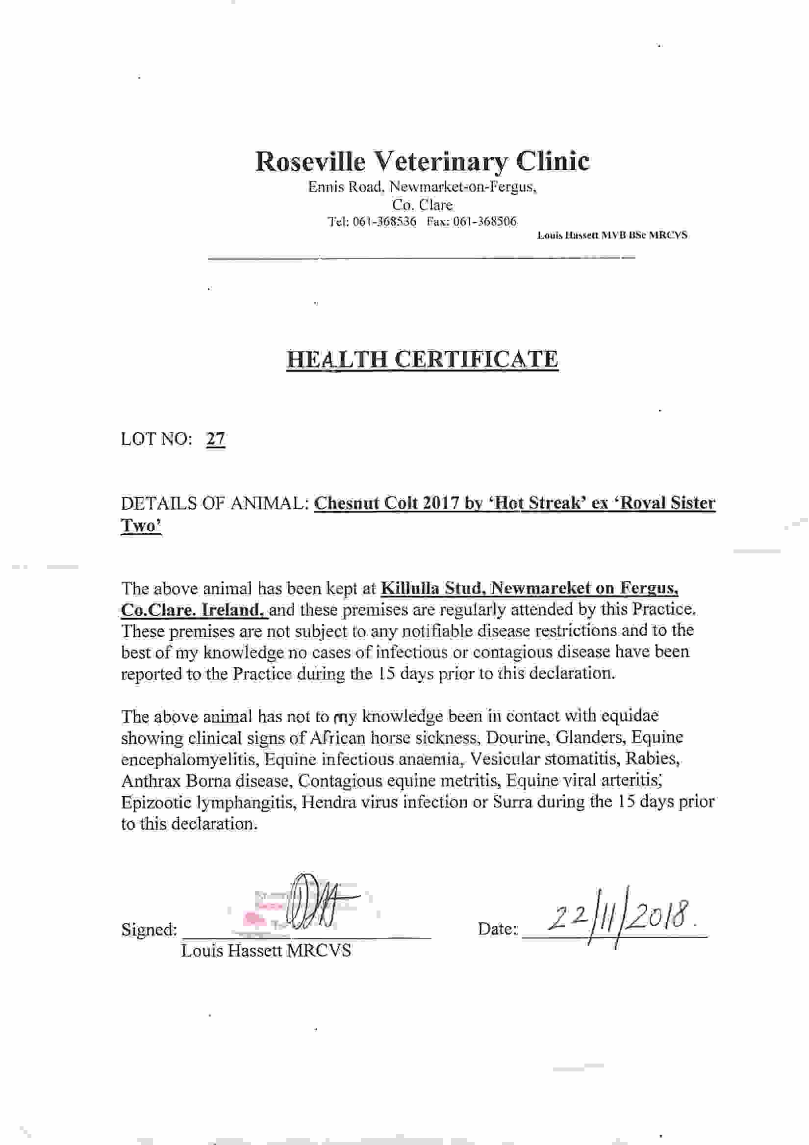 Consignor: Killulla Stud, Ireland