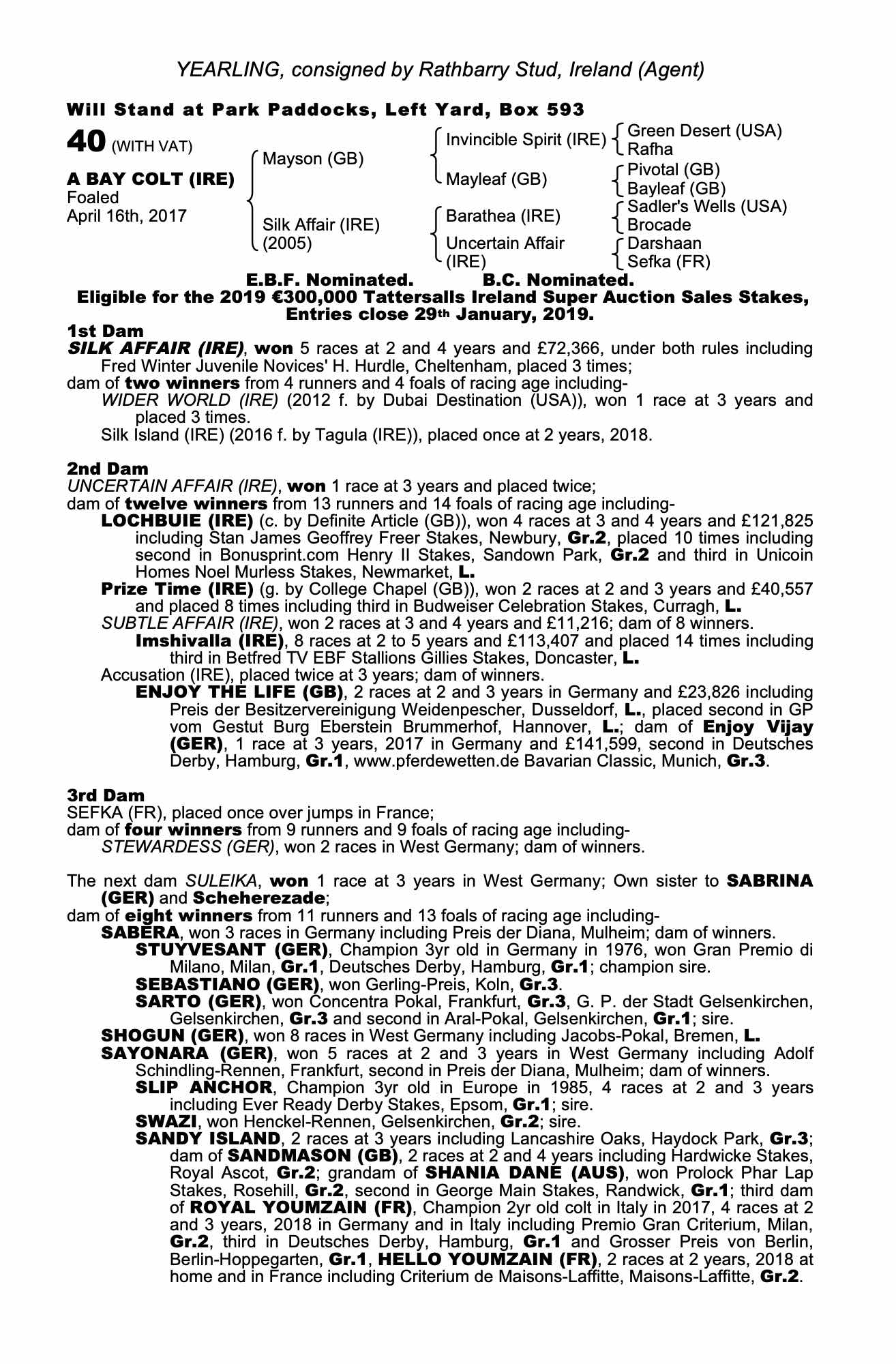 Consignor: Rathbarry Stud, Ireland (Agent)