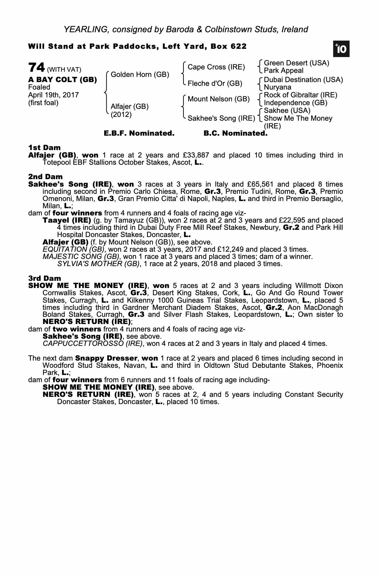 Consignor: Baroda & Colbinstown Studs, Ireland