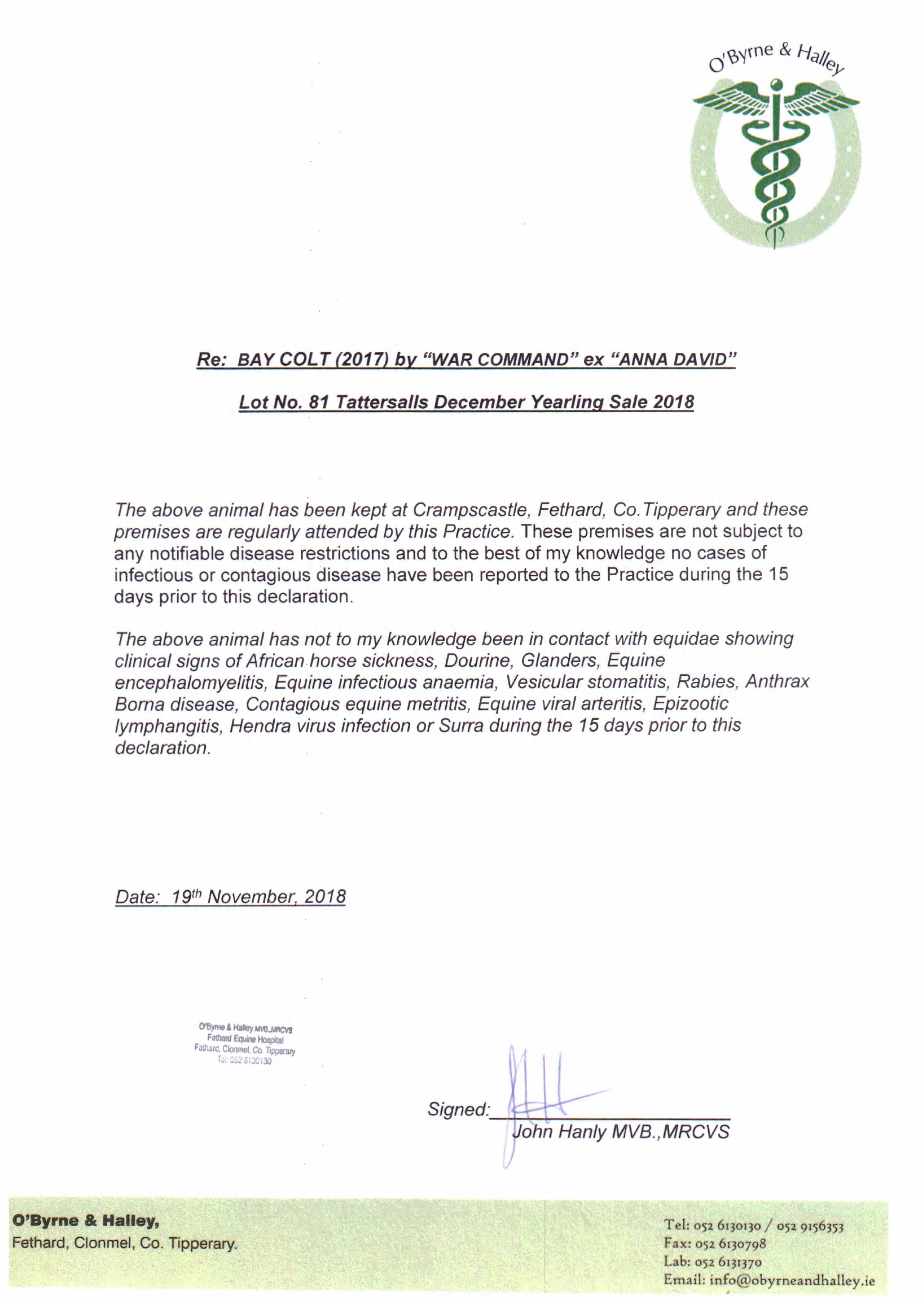 Consignor: Baroda & Colbinstown Studs, Ireland