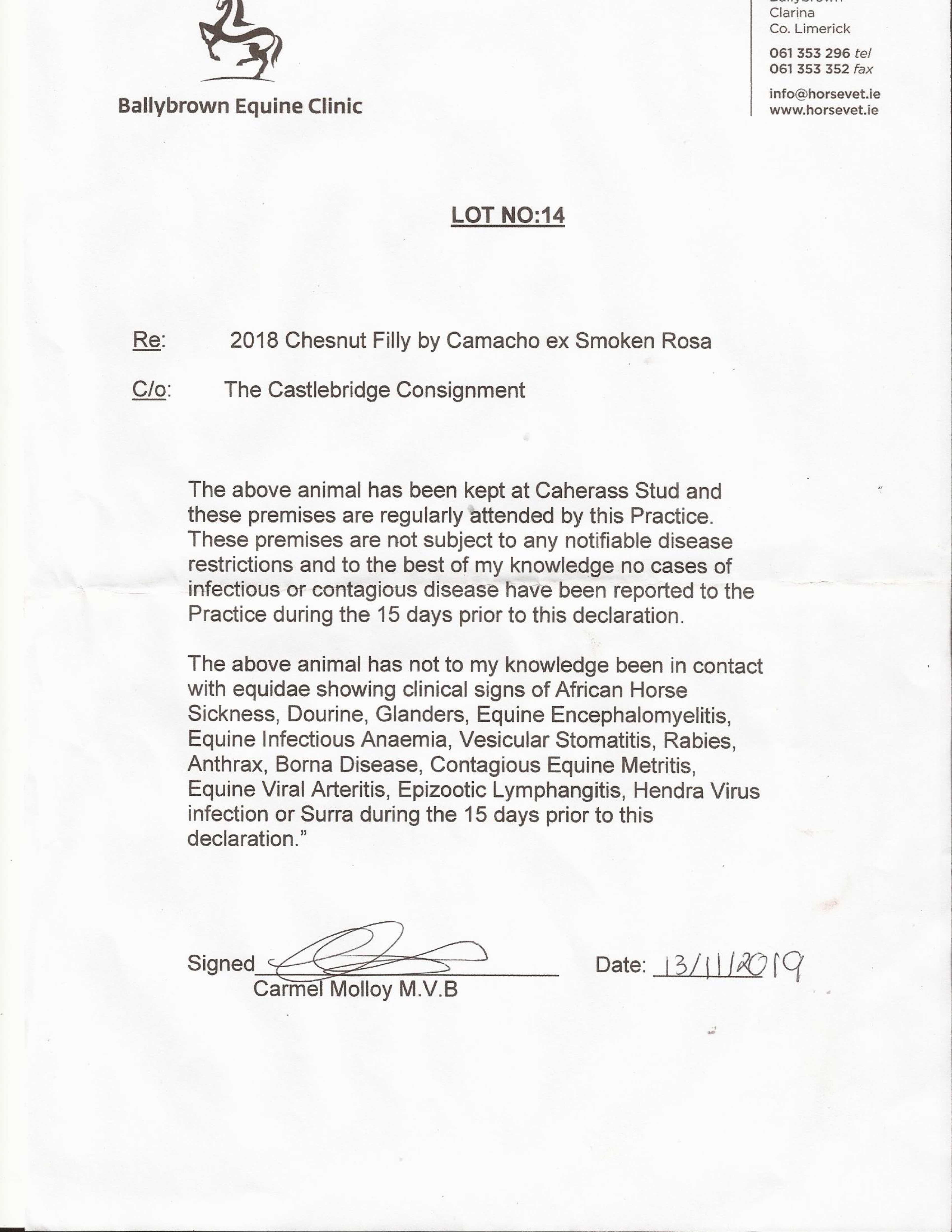 September Yearling Sale 2014 lot 65 F. by Zoffany (IRE) 2013, The Castlebridge Consignment=>Michael Halford €12,000