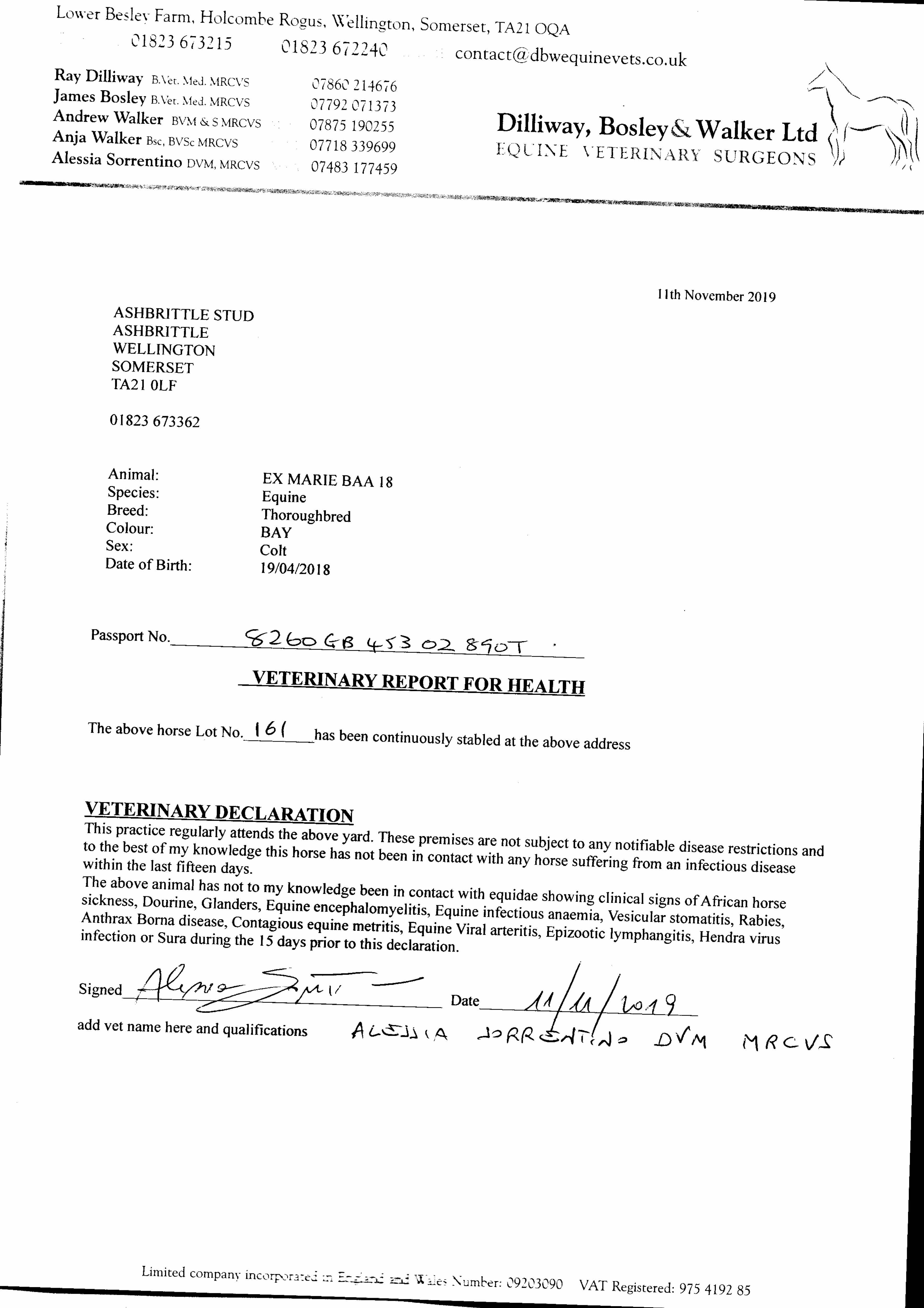 Consignor: Ashbrittle Stud