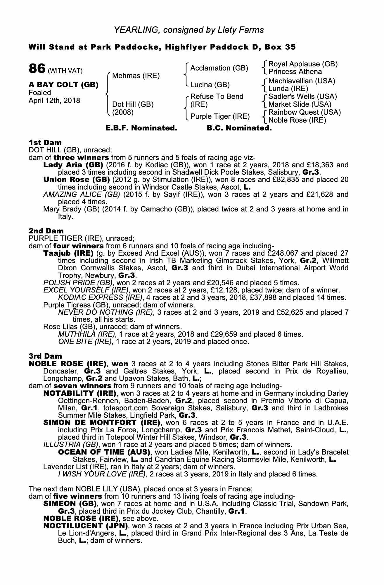 October Yearling Sale, Book 1 2022 lot 446 F. by Showcasing (GB) 2021, Llety Farms=>Joe Foley 90,000 gns
