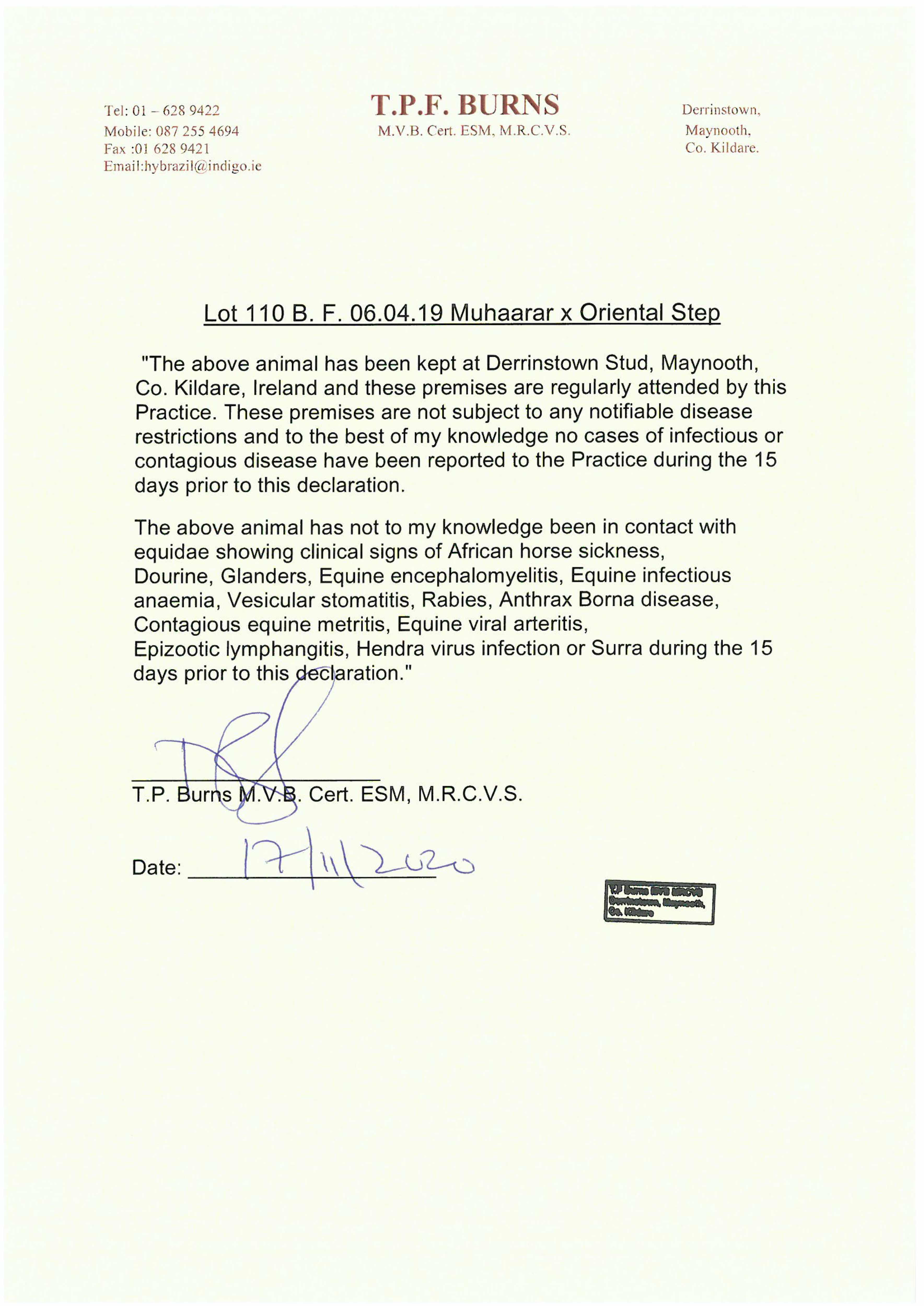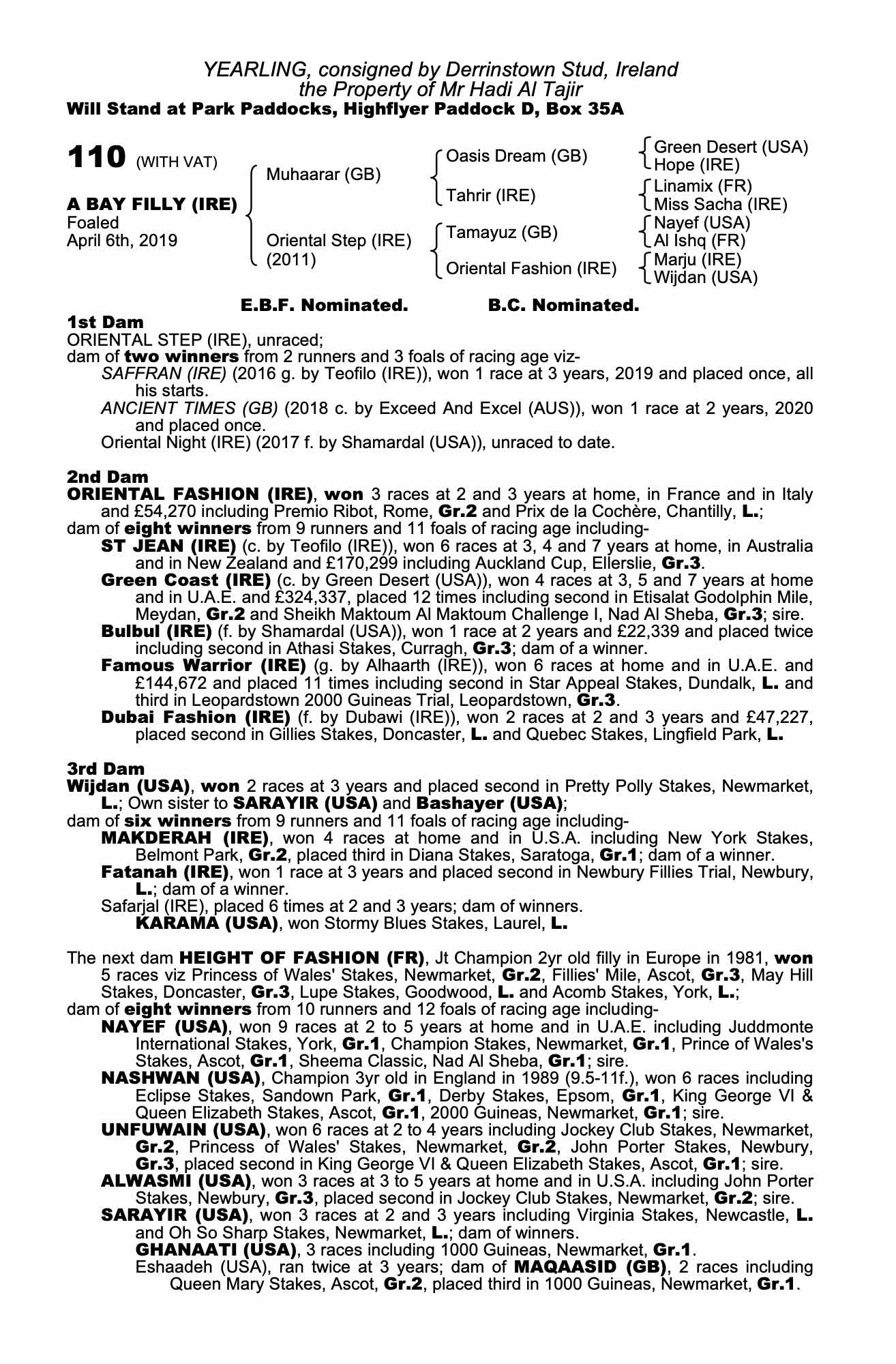 Consignor: Derrinstown Stud, Ireland
