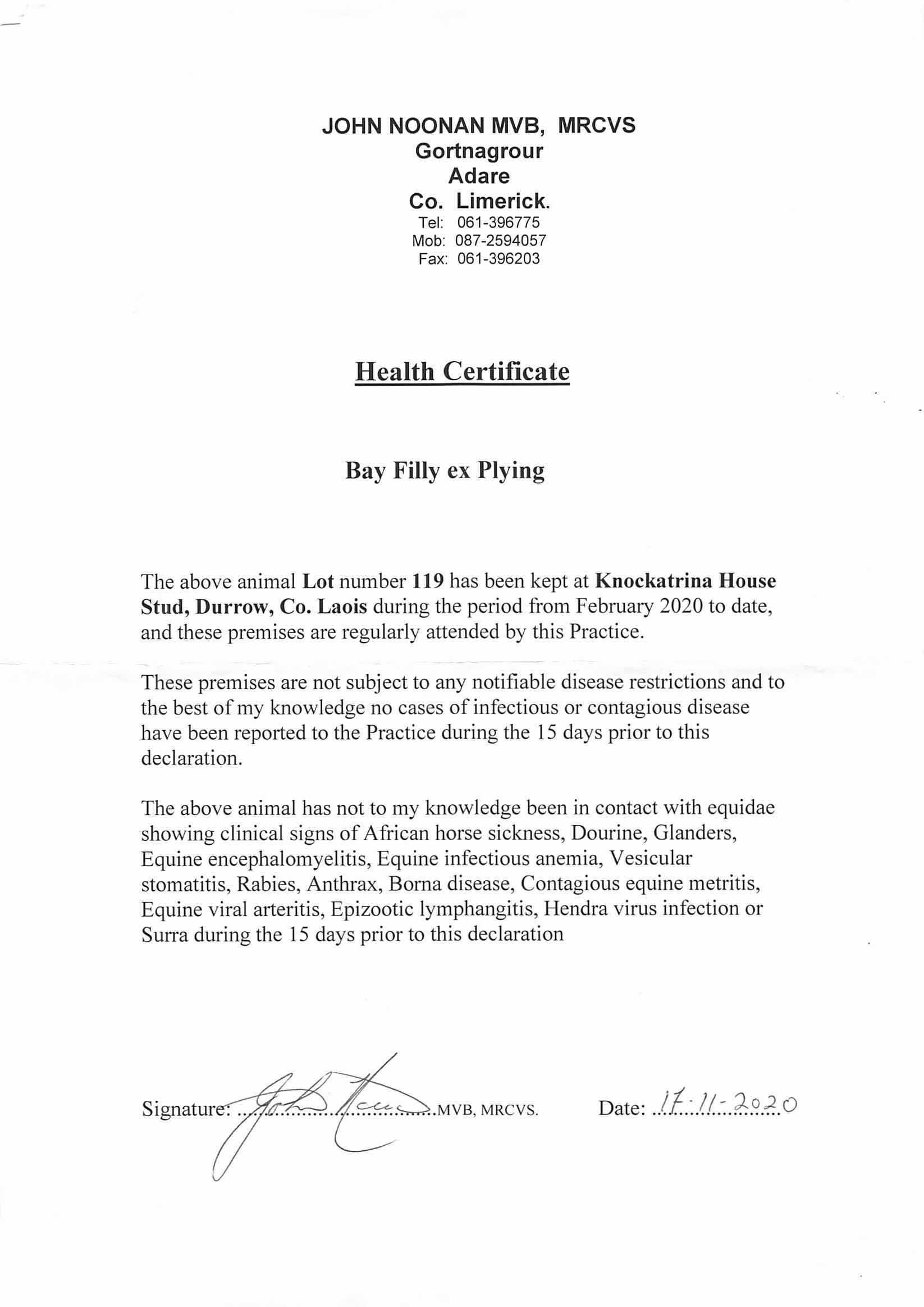 October Yearling Sale Book 1, 2016 lot 255 F. by High Chaparral (IRE) 2015, Churchtown House Stud, Ireland=>S Kirk 25,000 gns