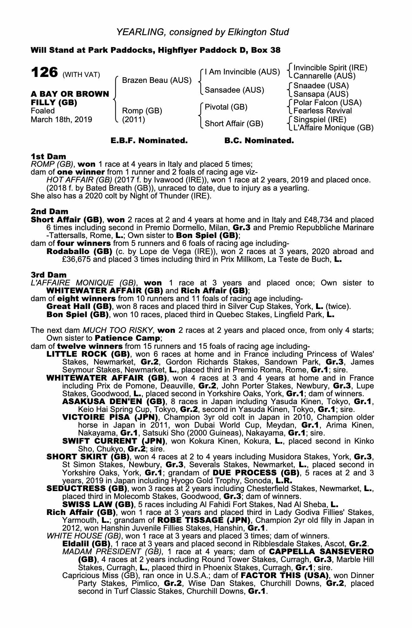 Consignor: Elkington Stud