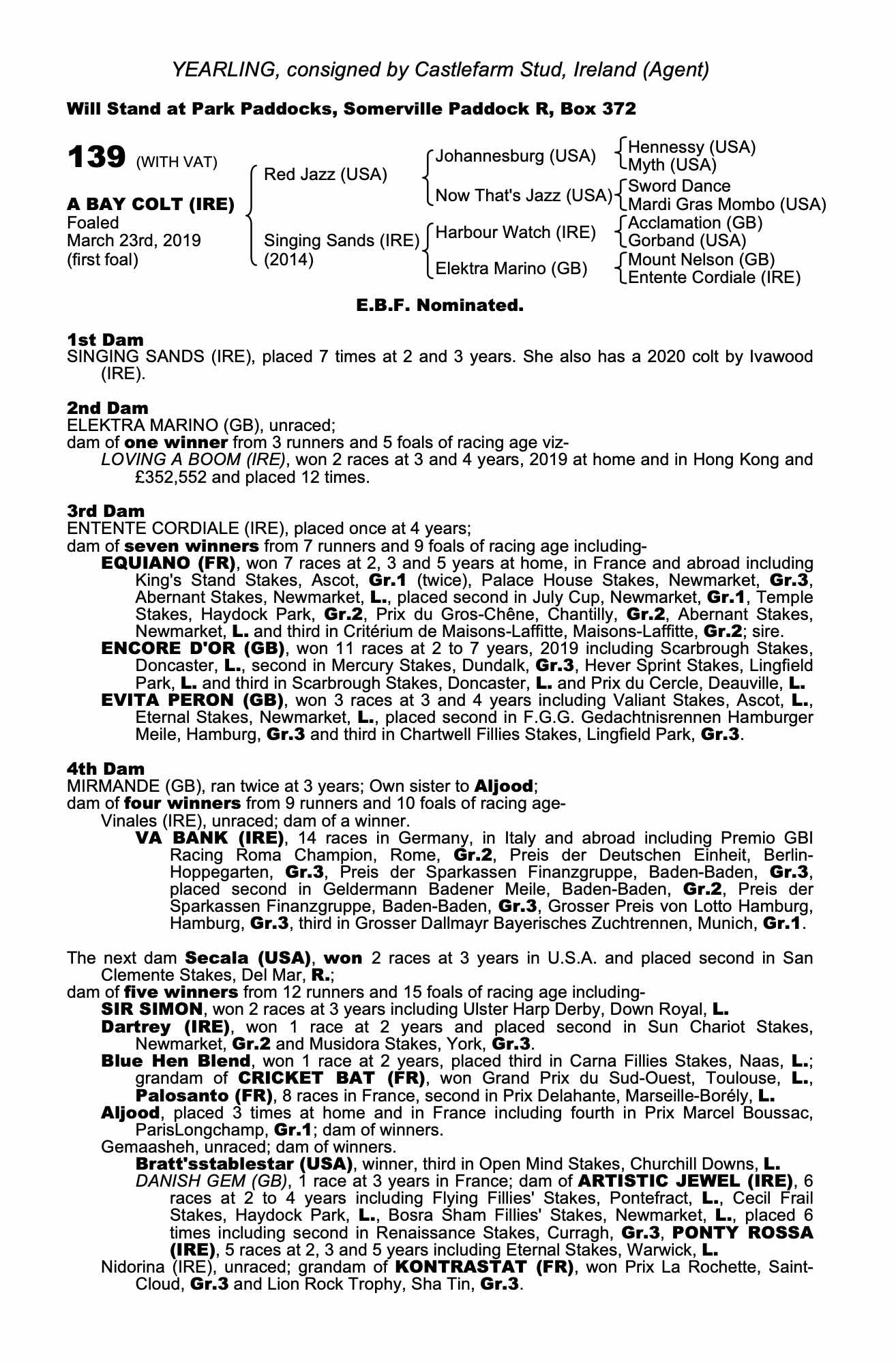 Consignor: Castlefarm Stud, Ireland (Agent)
