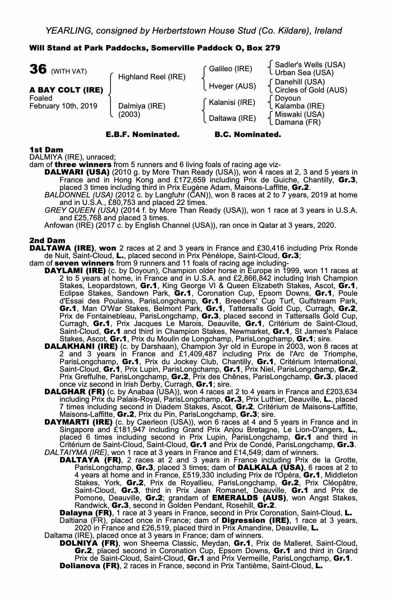 Consignor: Herbertstown House Stud (Co. Kildare), Ireland