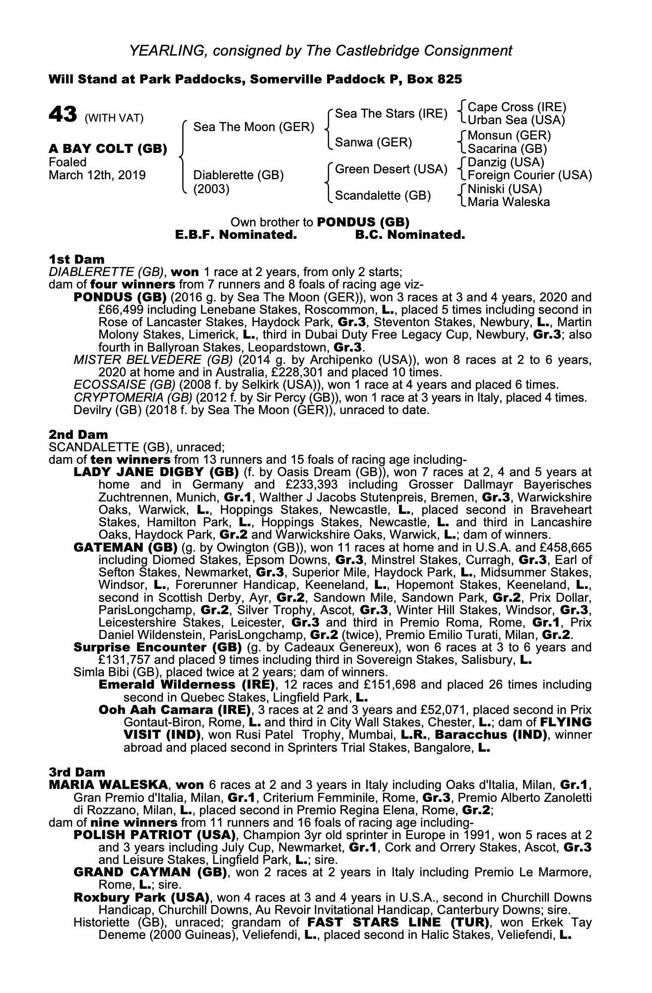October Yearling Sale, Book 2 2013 lot 1200 F. by Sir Percy (GB) 2012, Staffordstown, Ireland=>Federico Barberini, Agent 14,500 gns
